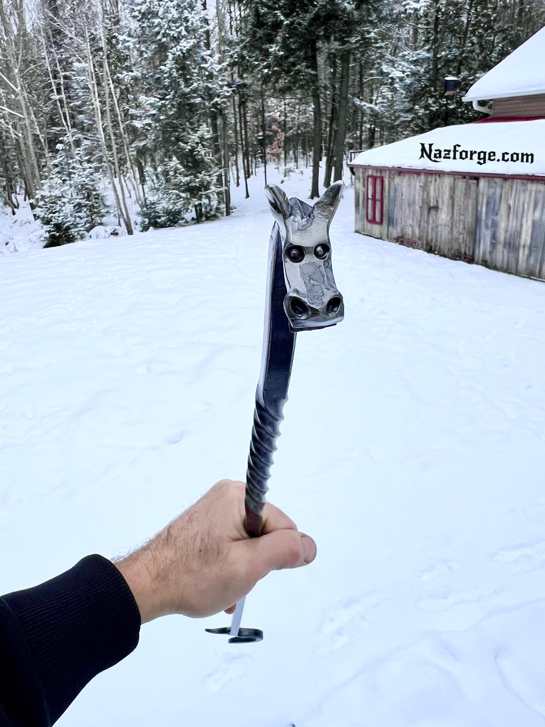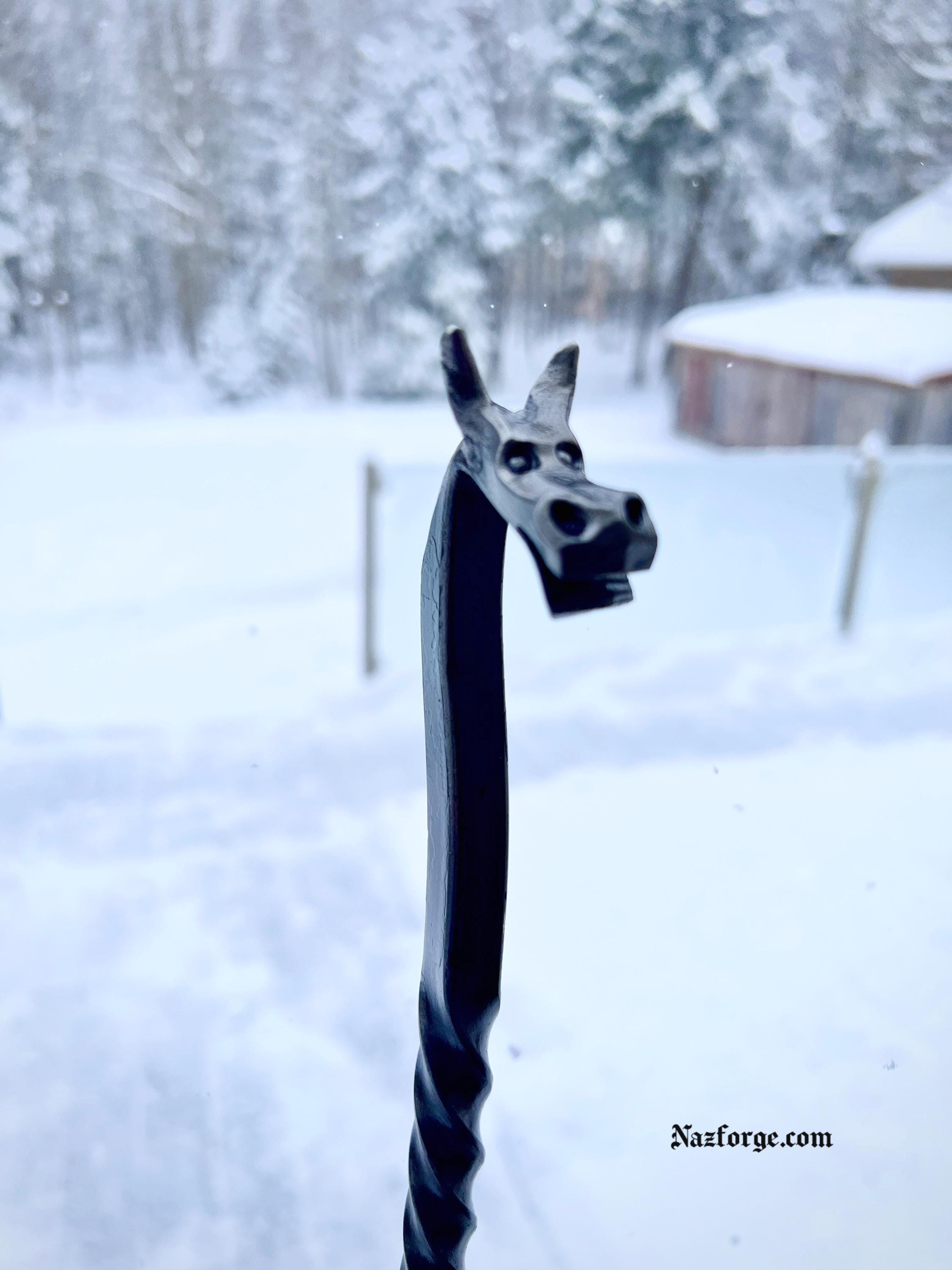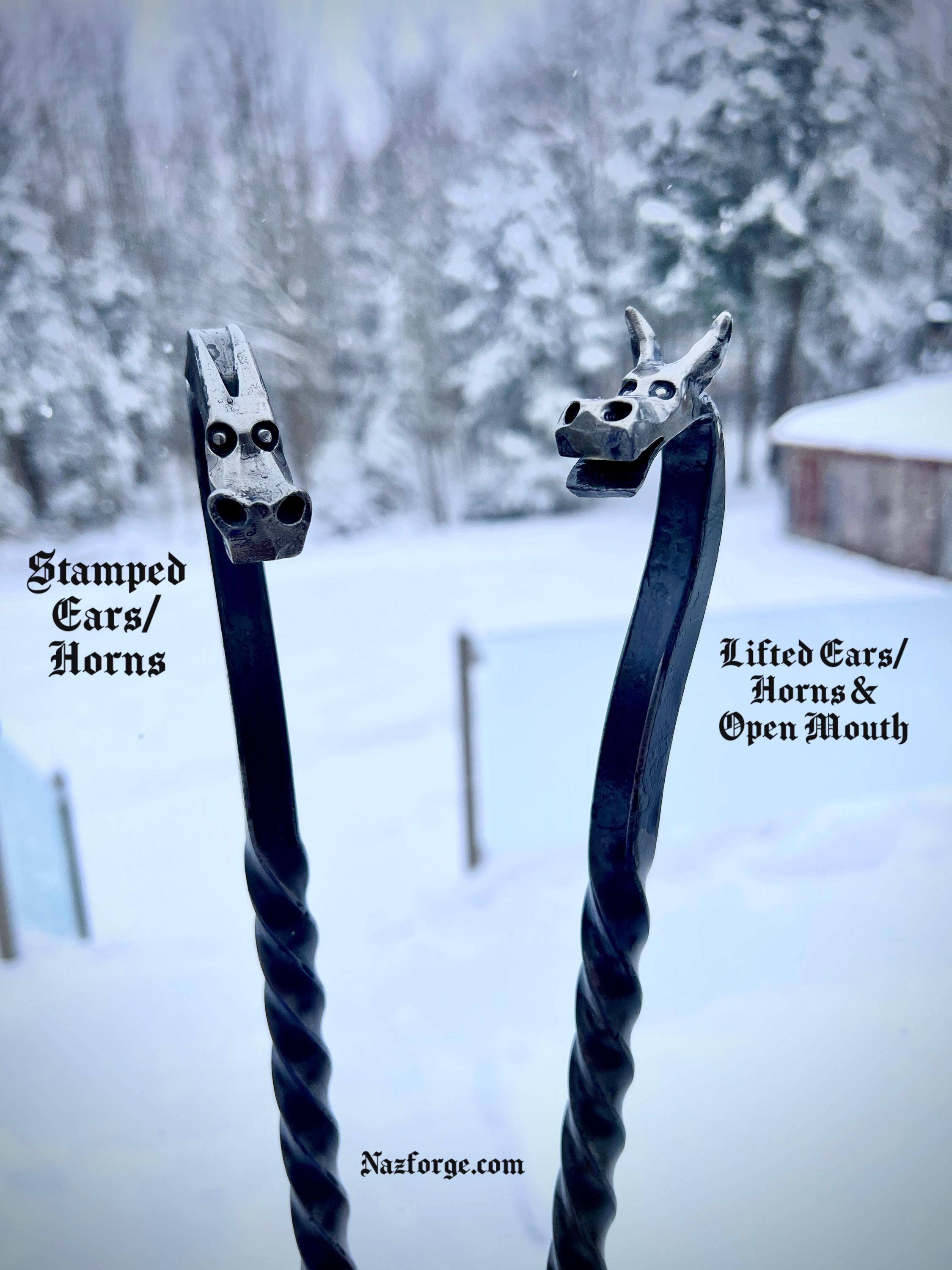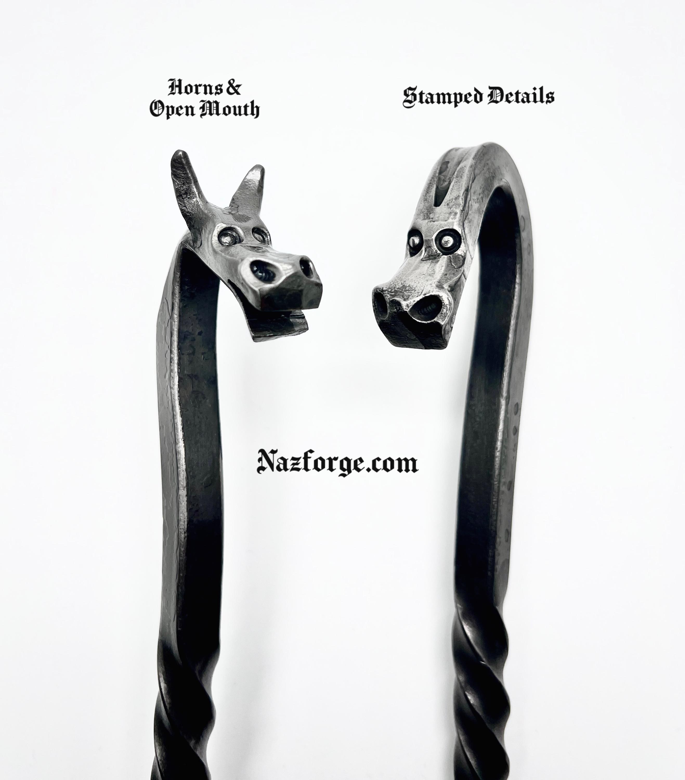 - Forged Dragon Head with Horns & Open Mouth.