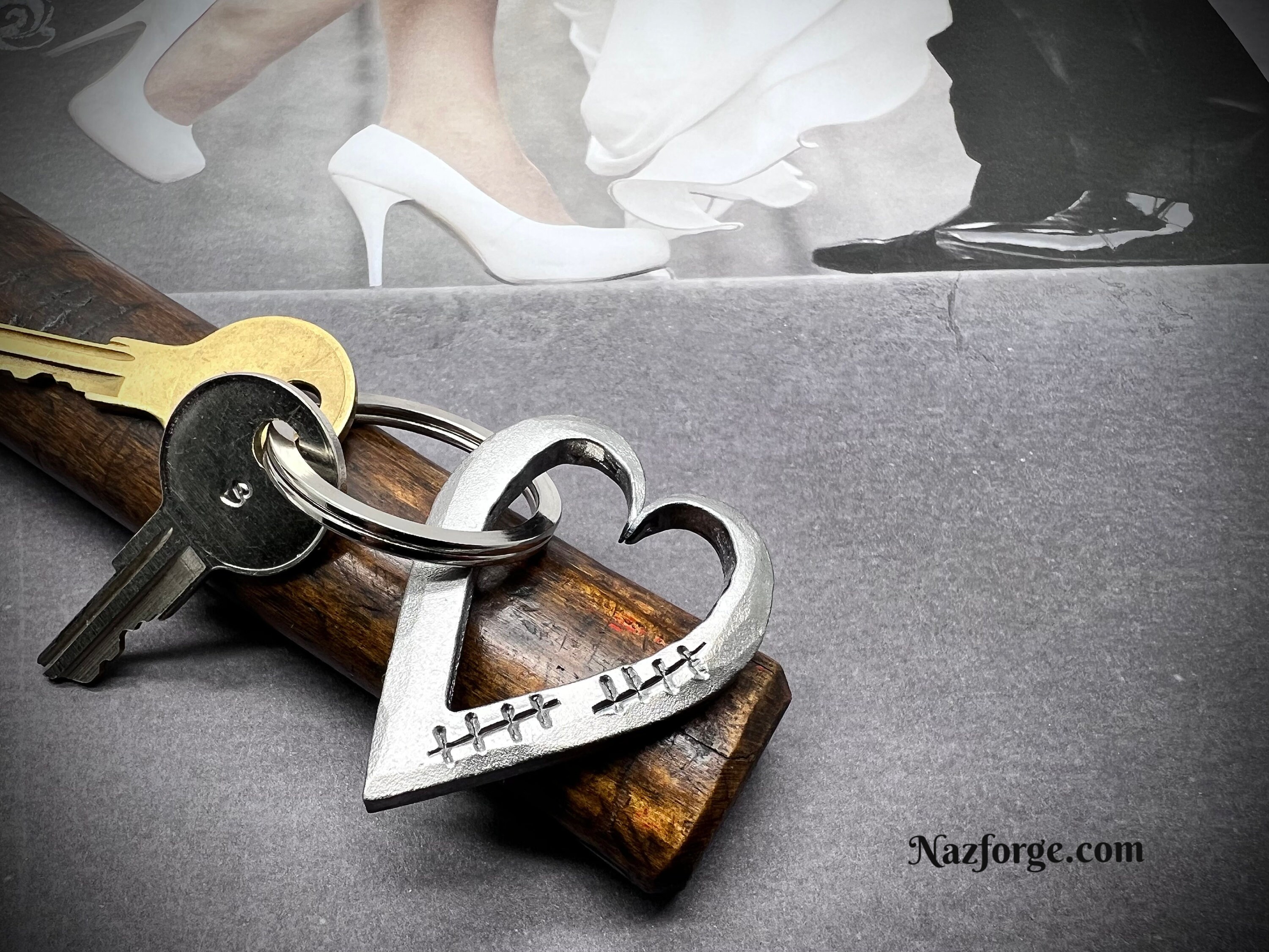 Your wedding anniversary is unique and should be highlighted with a unique gift, a handmade item has that warm uniqueness feel that is not attainable with a machine... This hand forged heart keychain will last a lifetime ...