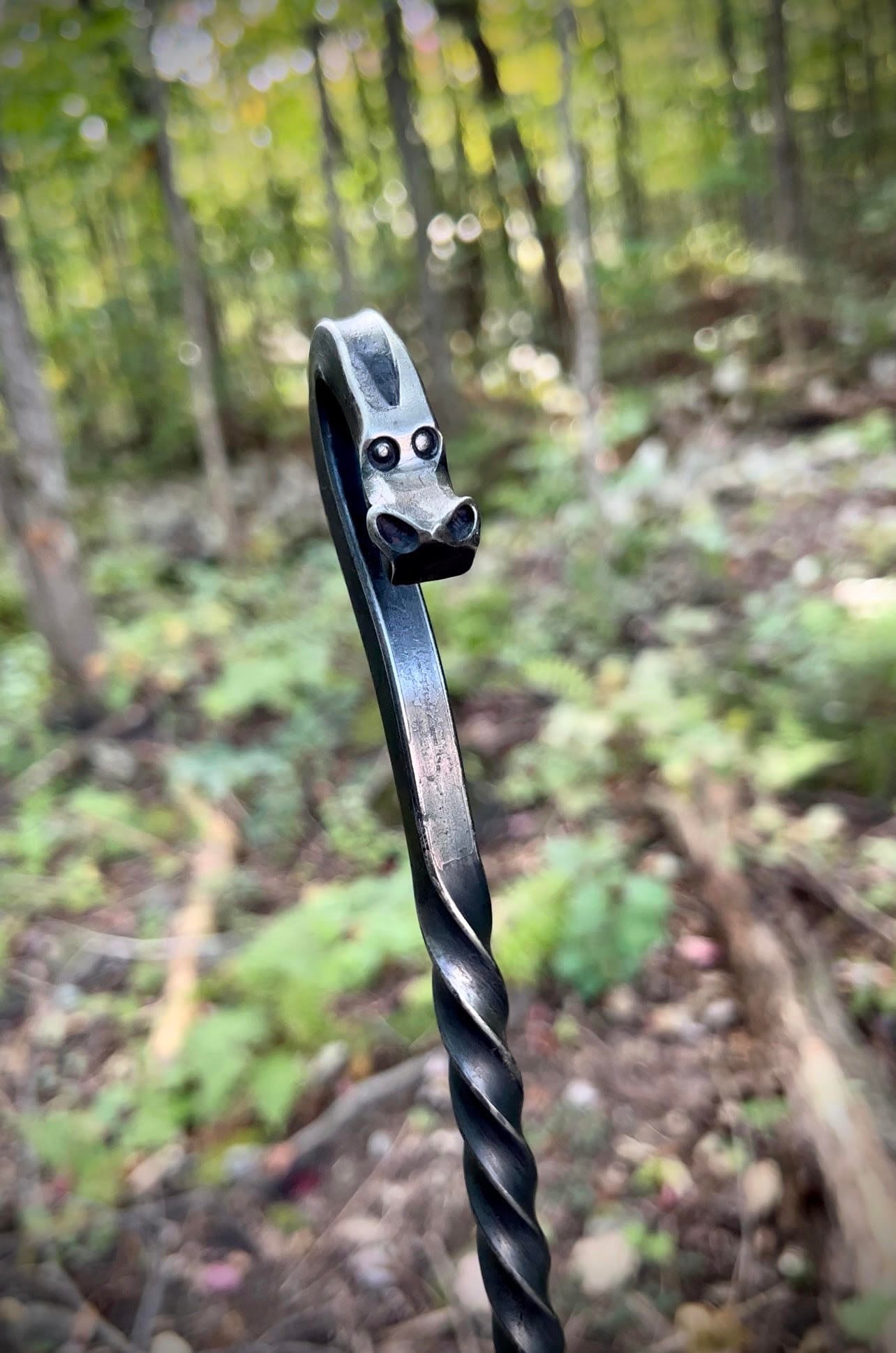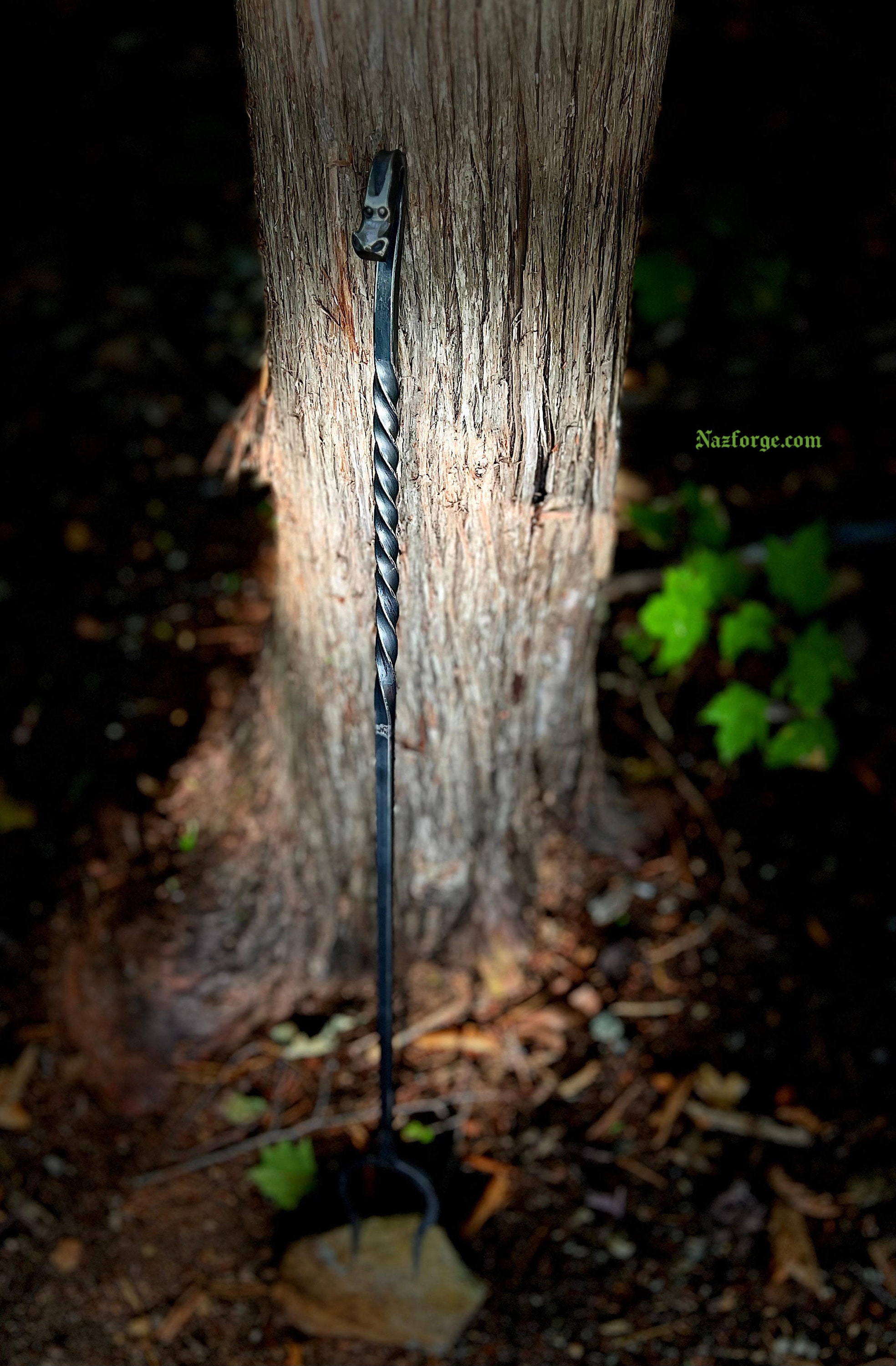 Approximately 30" long, the handle has a forged dragon head & a decorative twist which decorates and adds grip when using this tool.