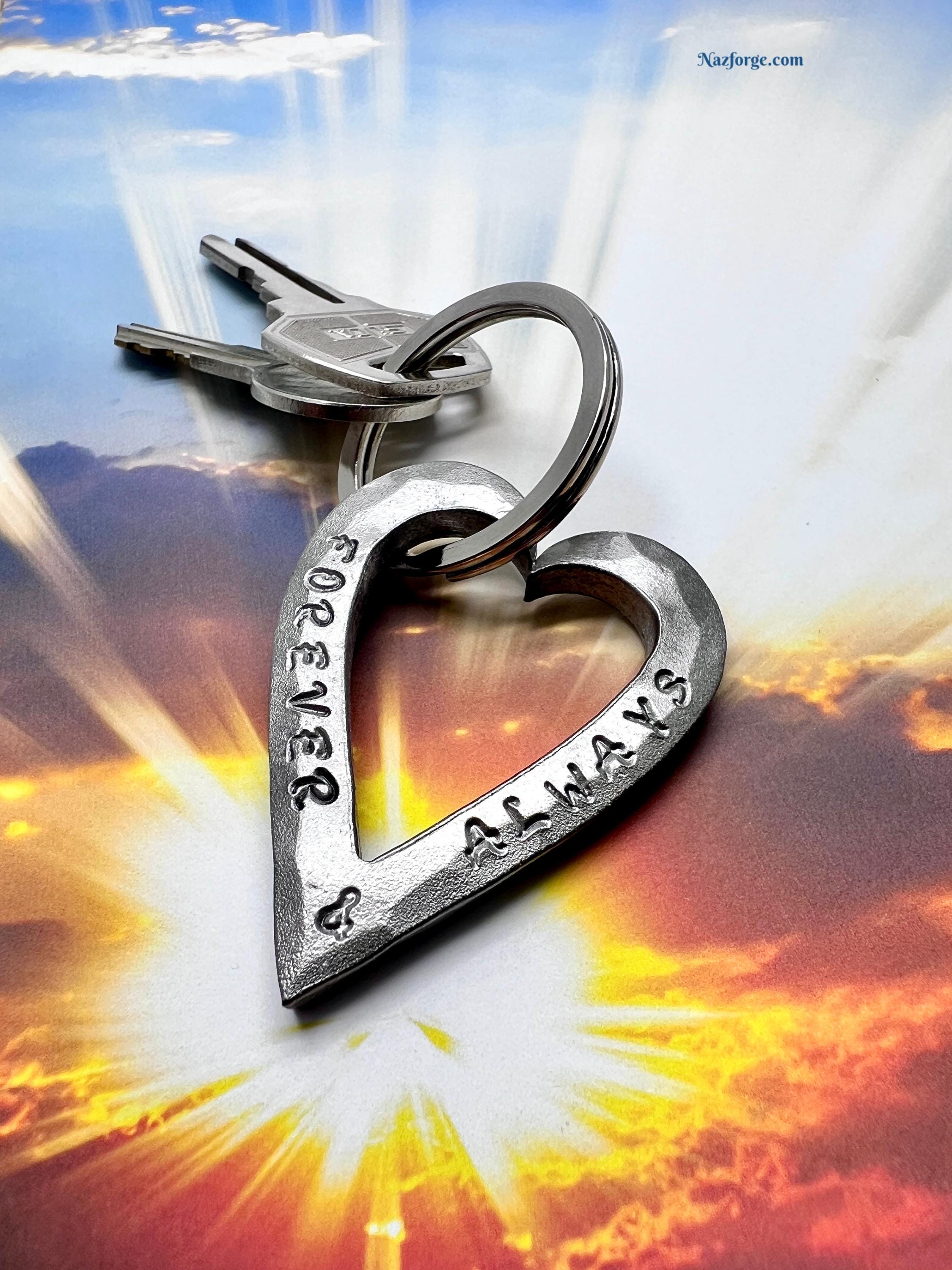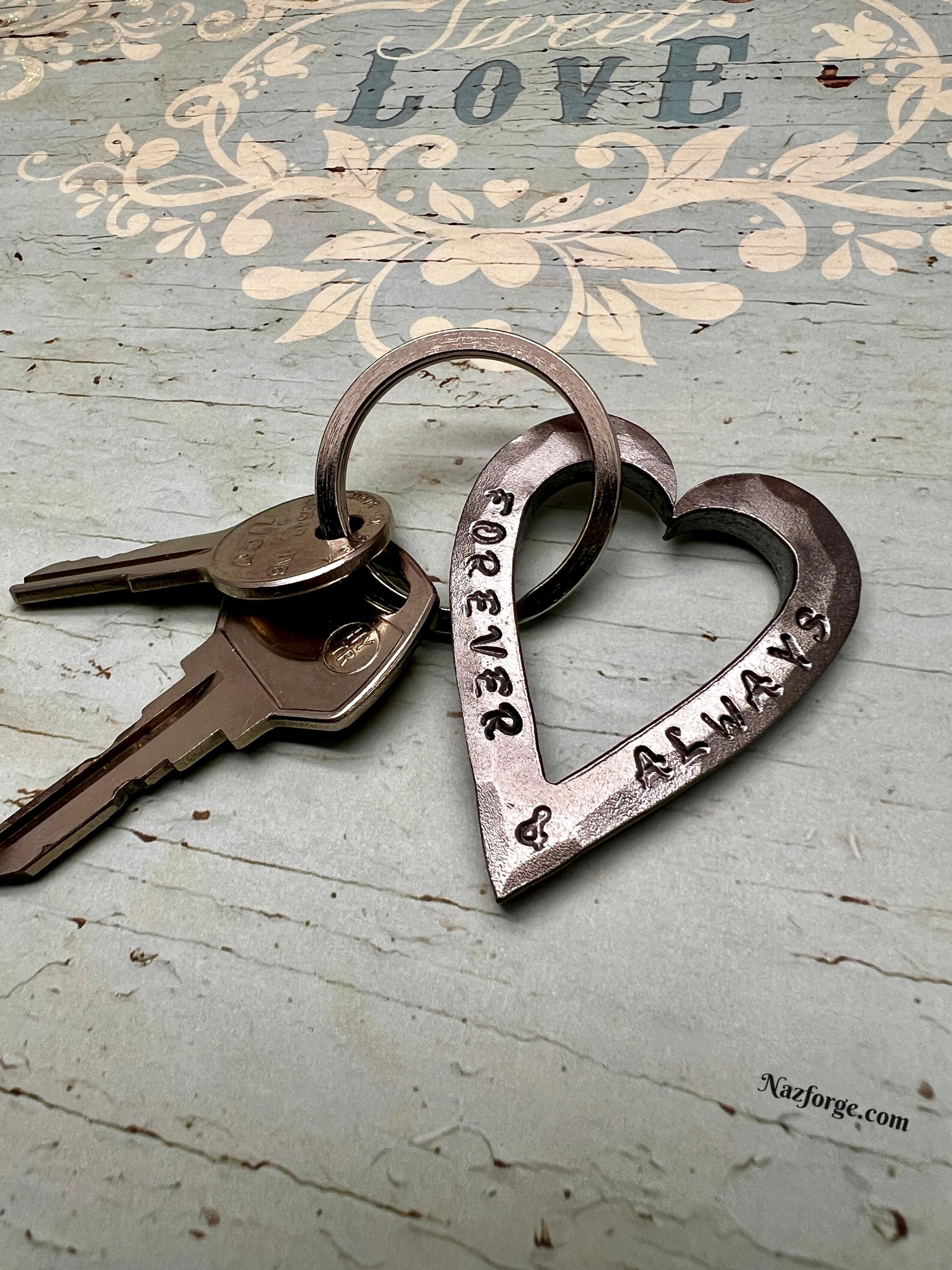 Forged in fire, this heart keychain is done free hand with the hammer and anvil.