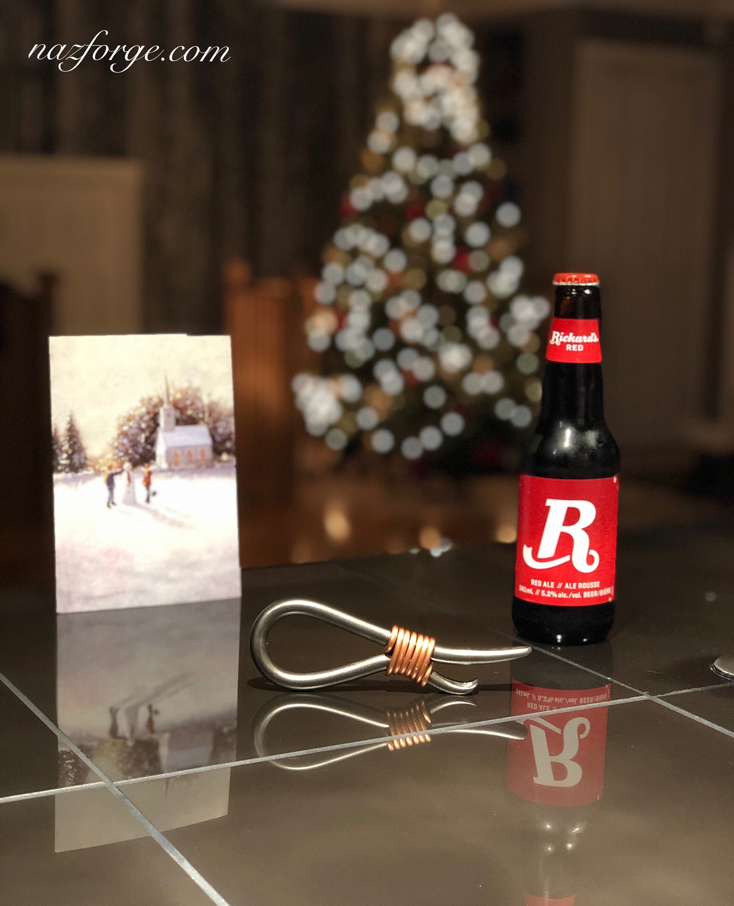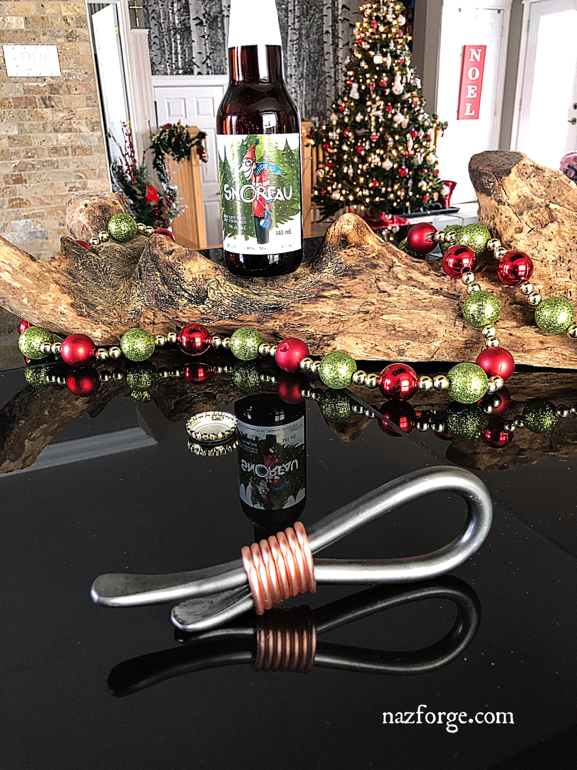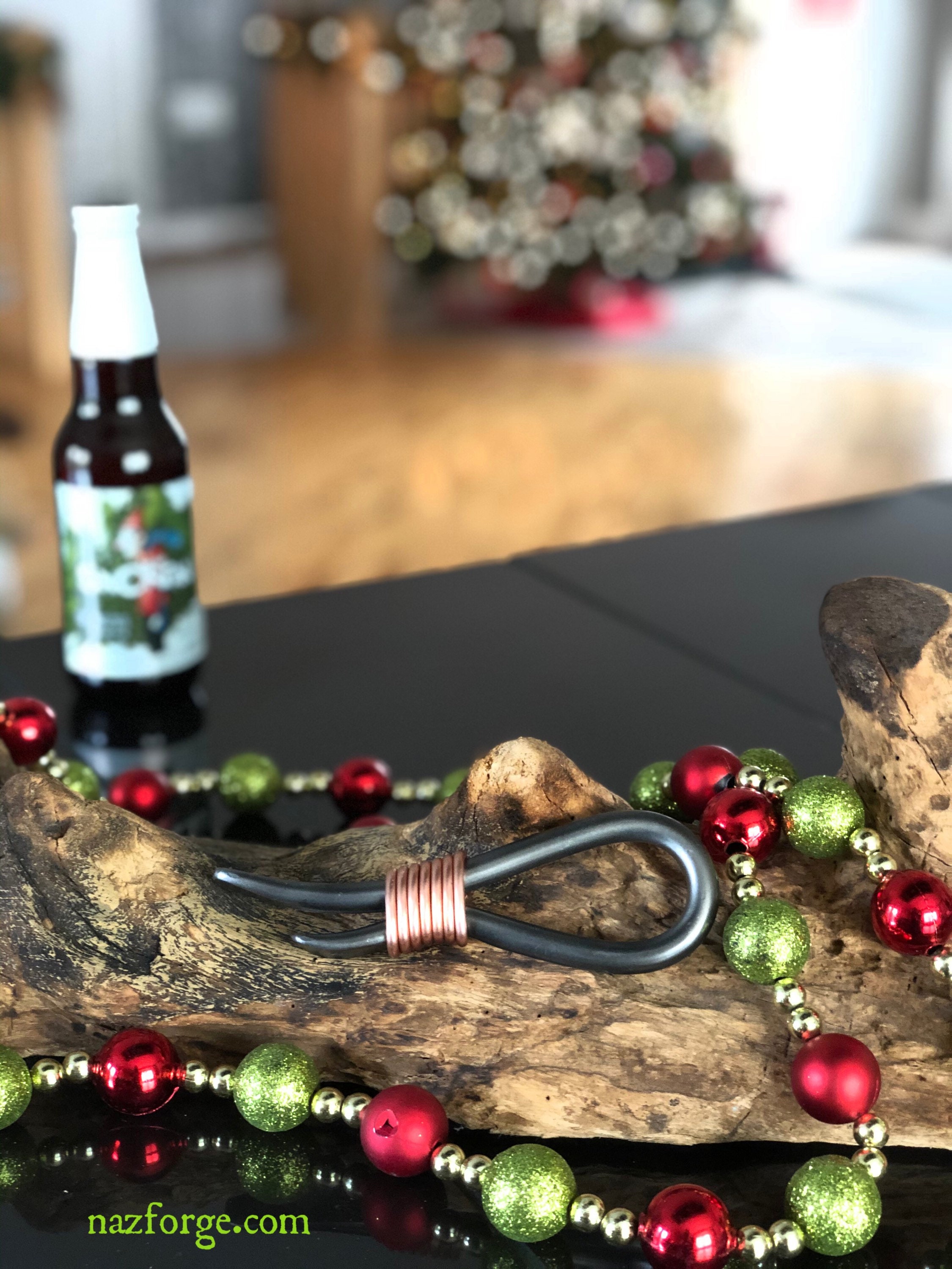 I put a lot of importance in cleaning each opener after it has been hammered, bent into shape, and "in and out" of the fire numerous times...I acheive the clean look you see in the photos by using the wire wheel and sandpaper, this leaves each opener with a clean attractive look that is perfect for gift giving...