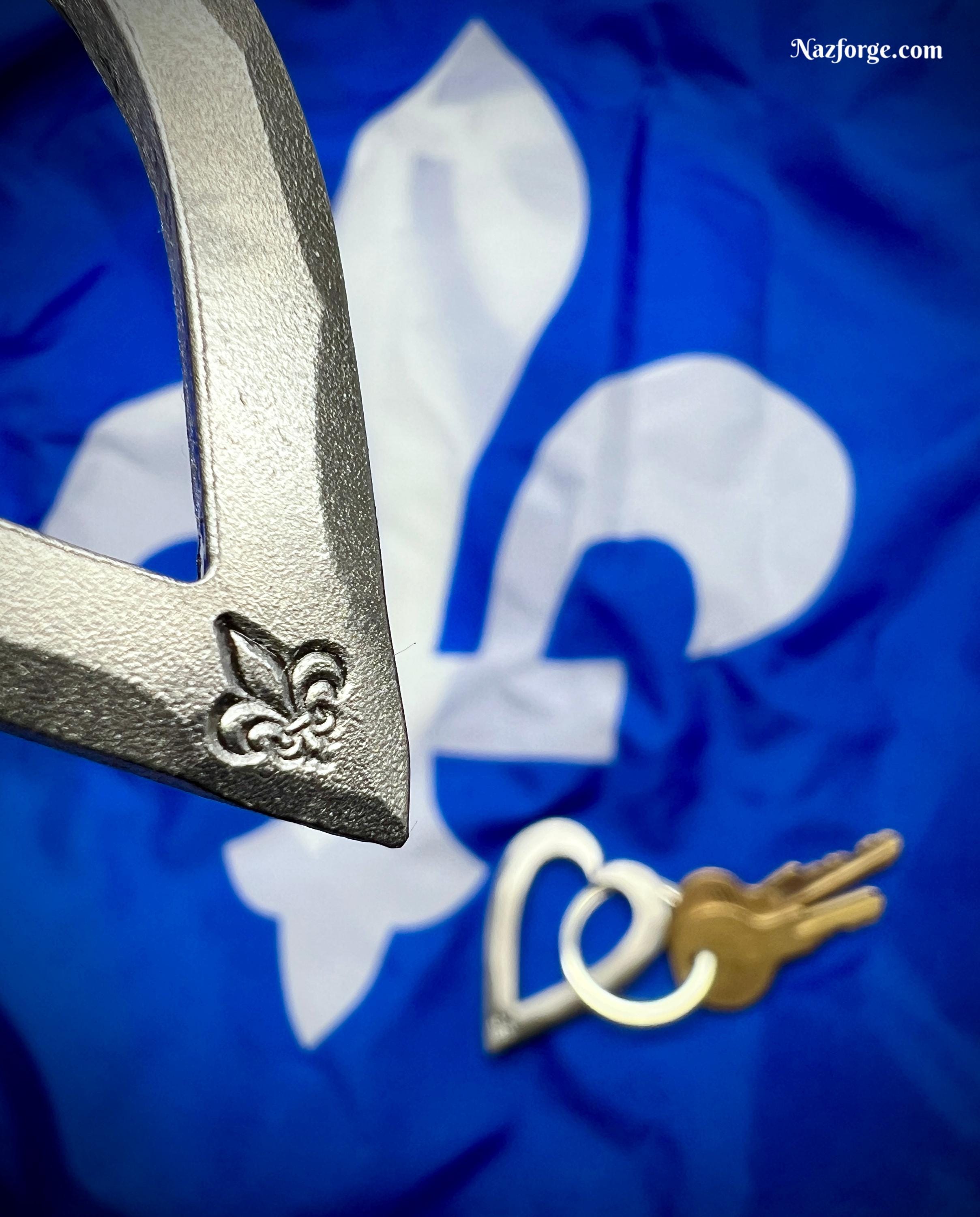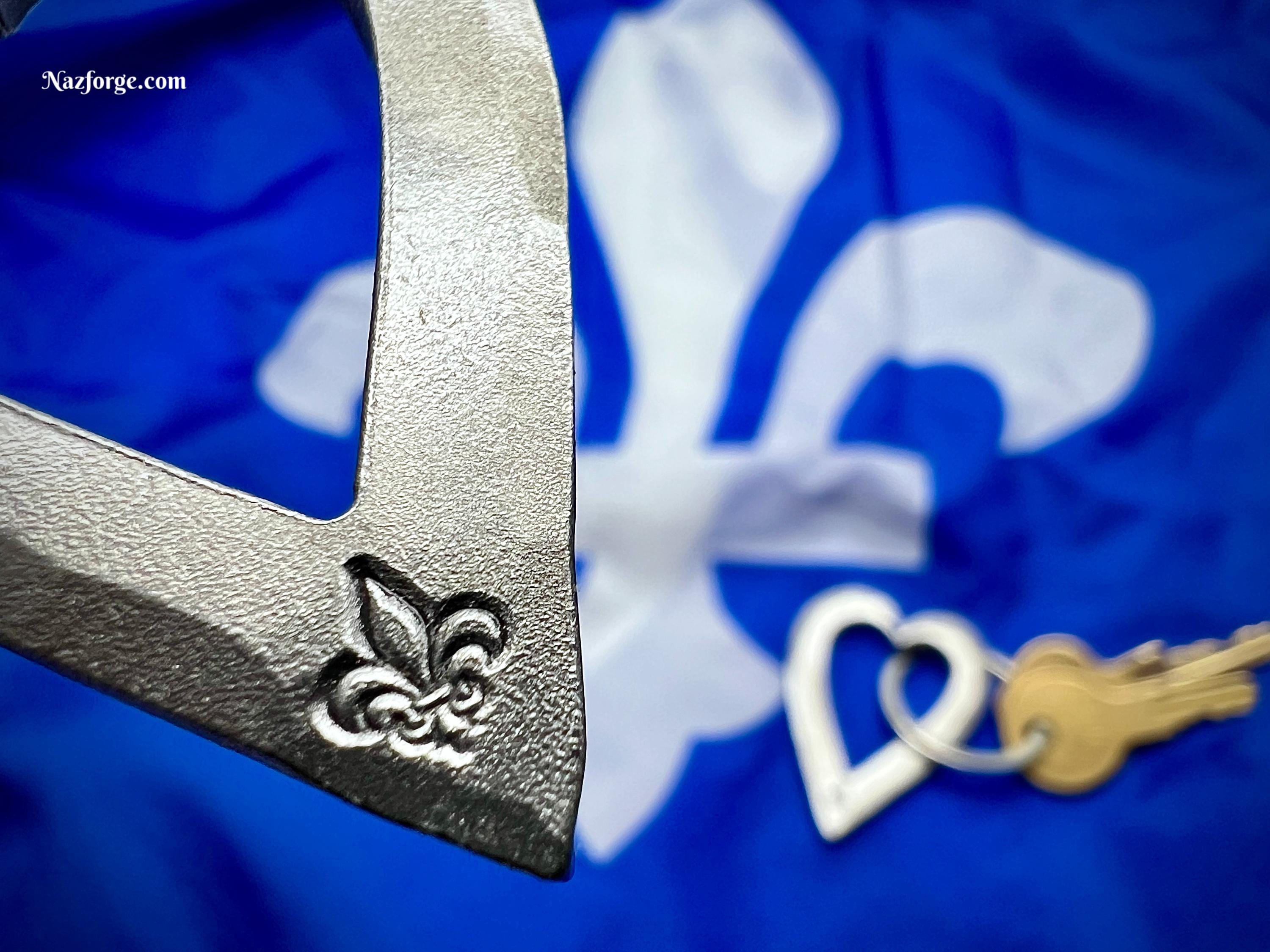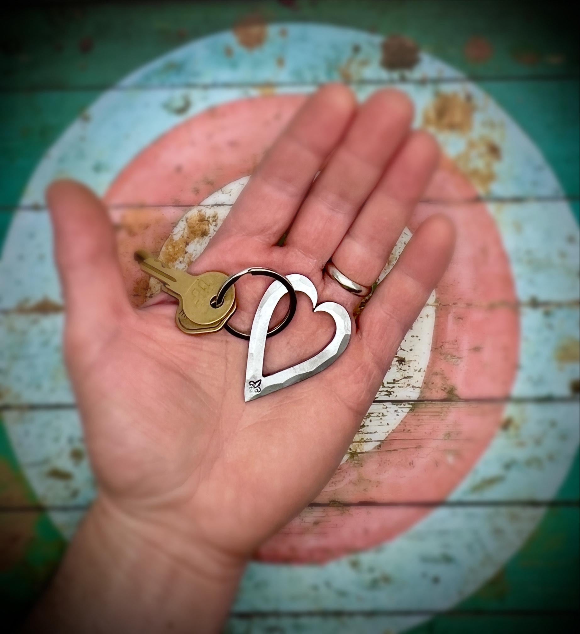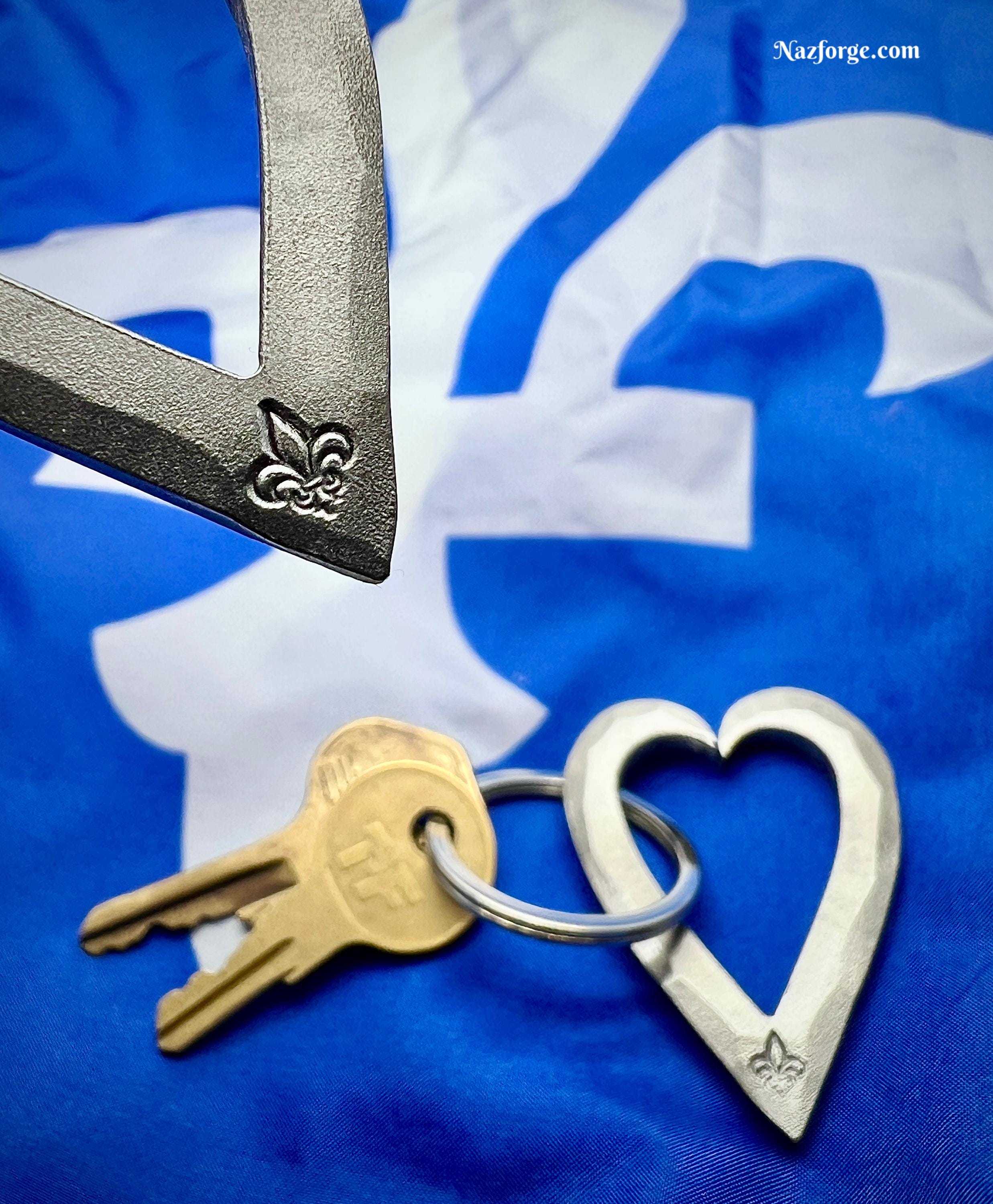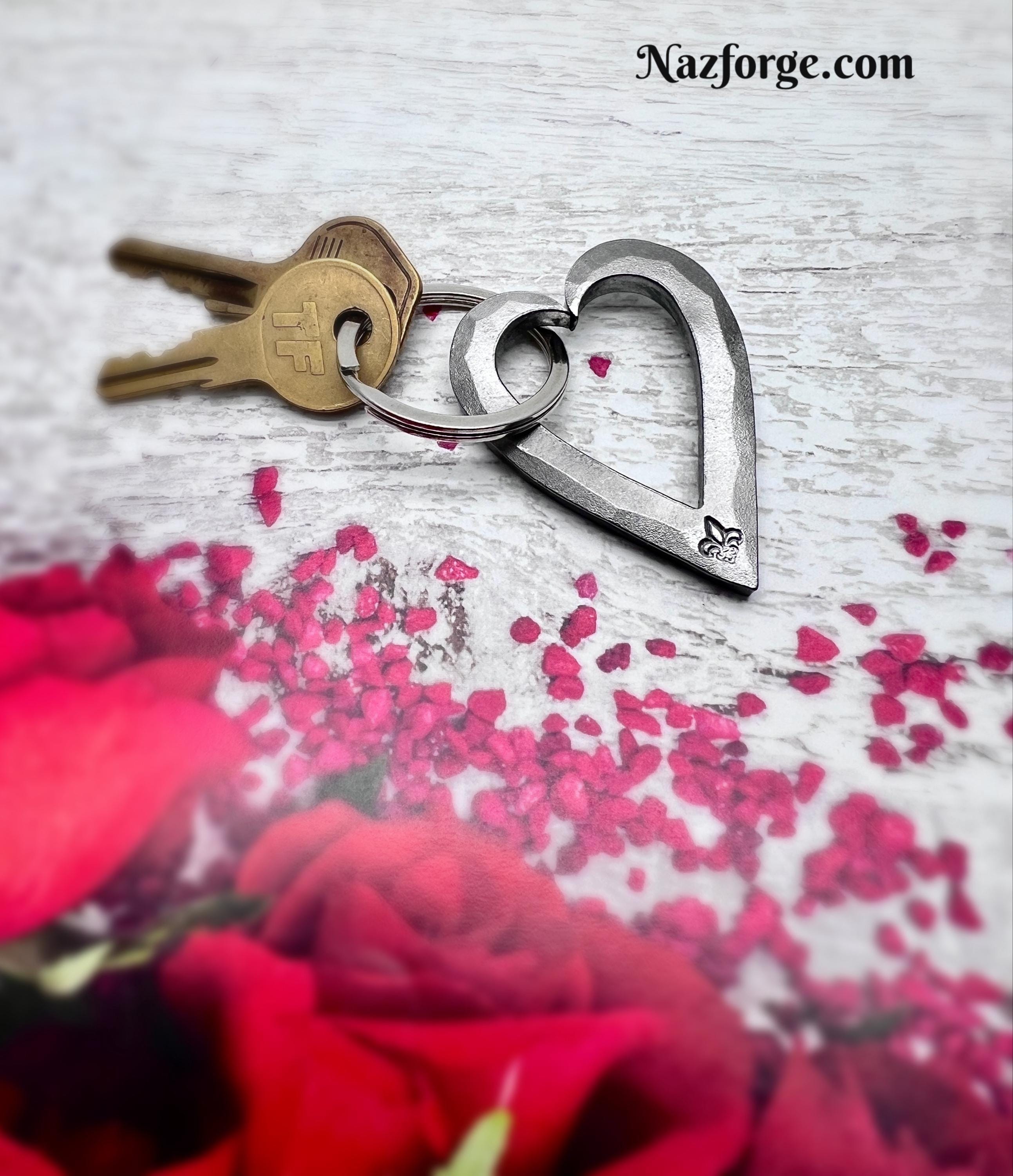 This hand forged heart keychain will last a lifetime, the heart is formed hot at the anvil, then a lily flower is stamped at the bottom.