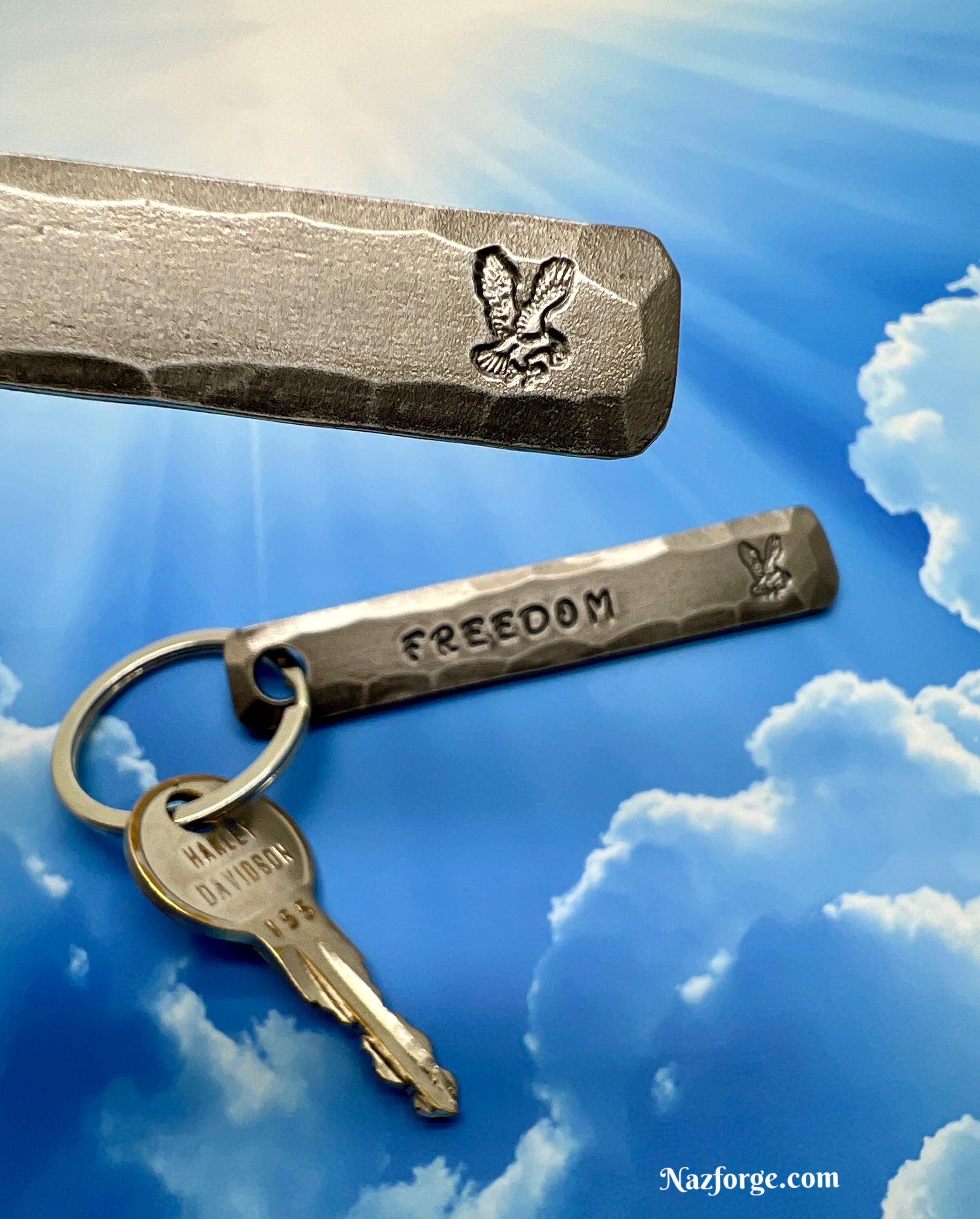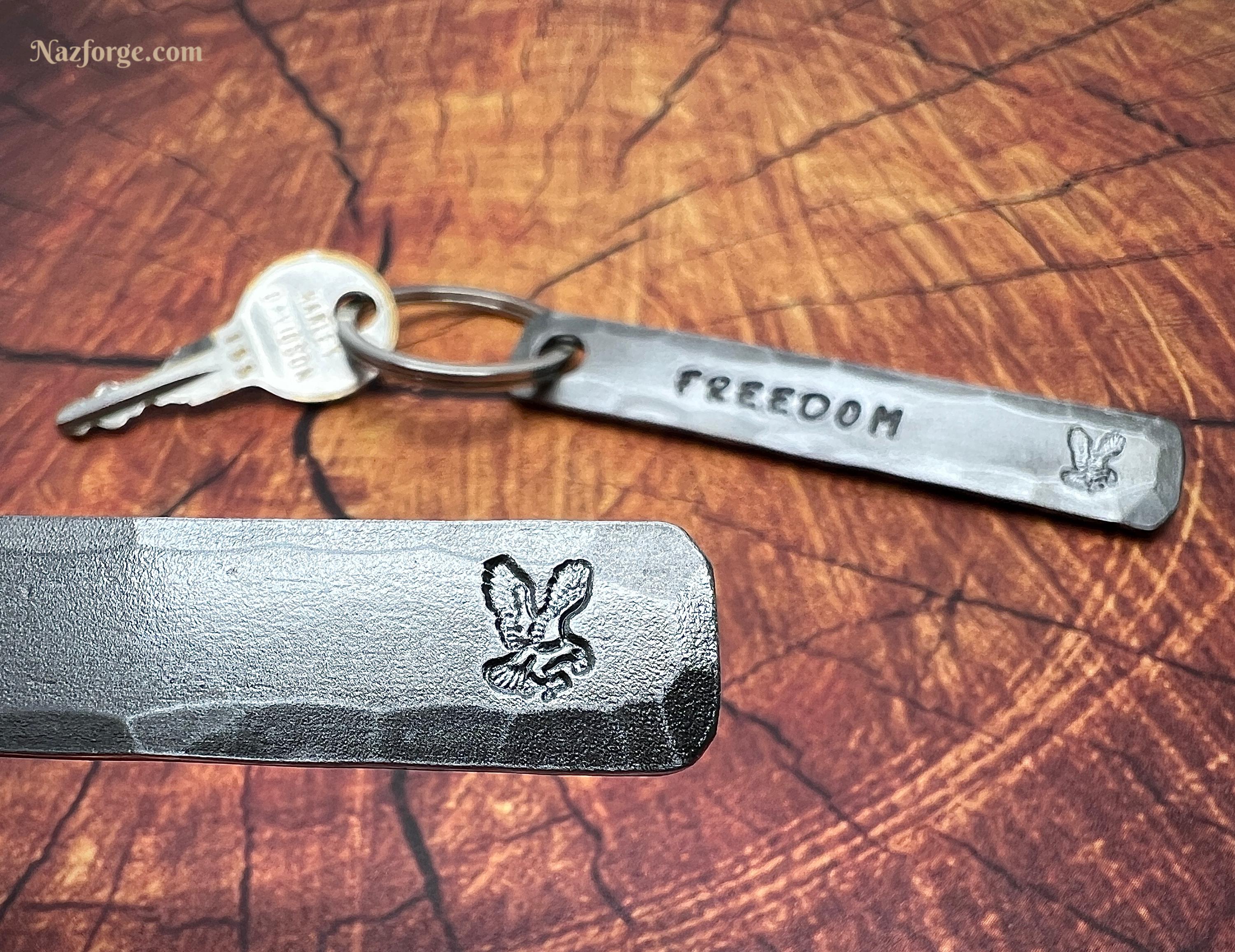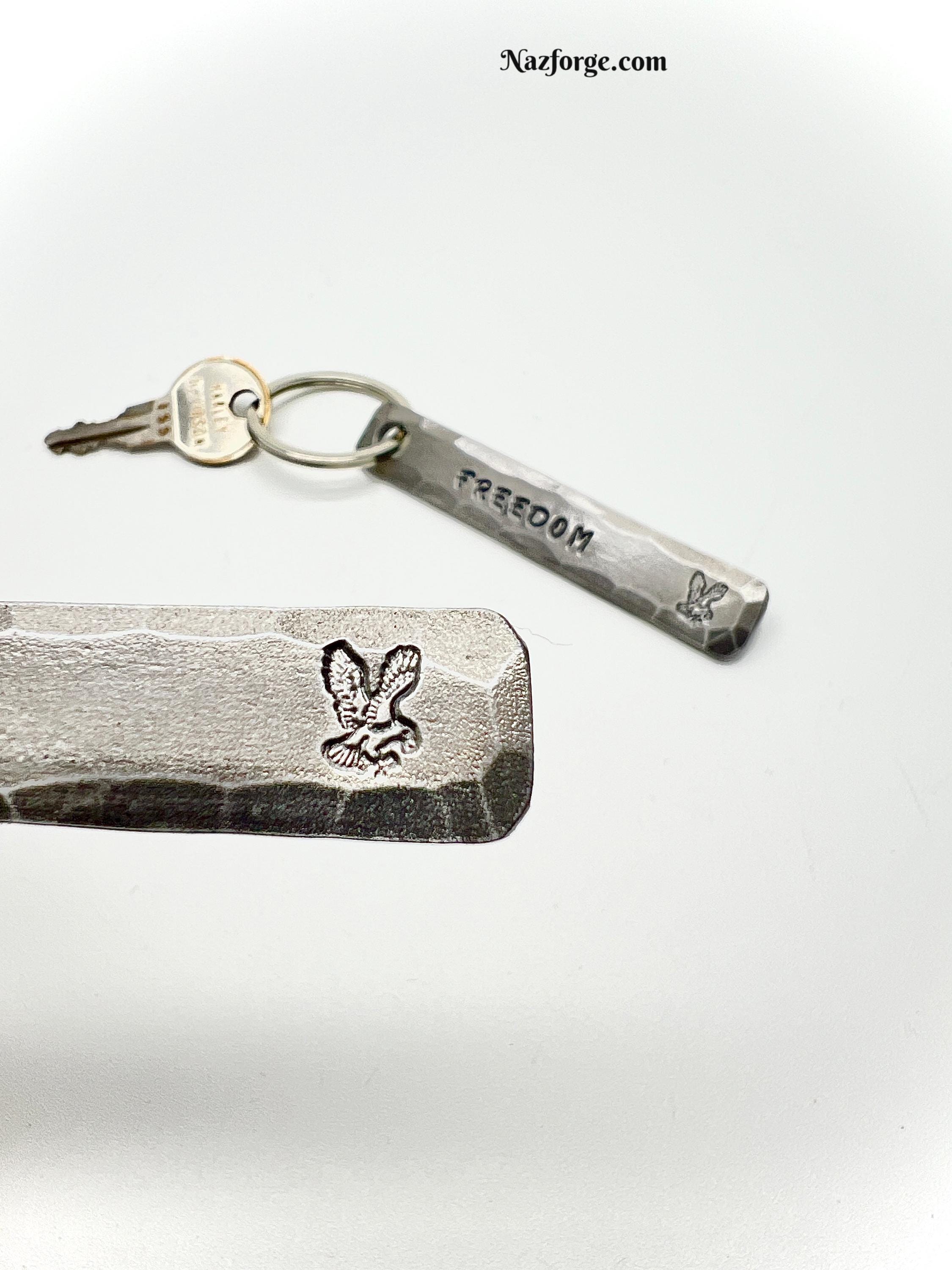 On the front I stamp the Eagle along with your choice of personalization if you choose to personalize it… The corners are smoothened and the edges hammered to give it a nice hand made feel and texture that you can not get with a machine, my logo signature "Naz" is on the back...