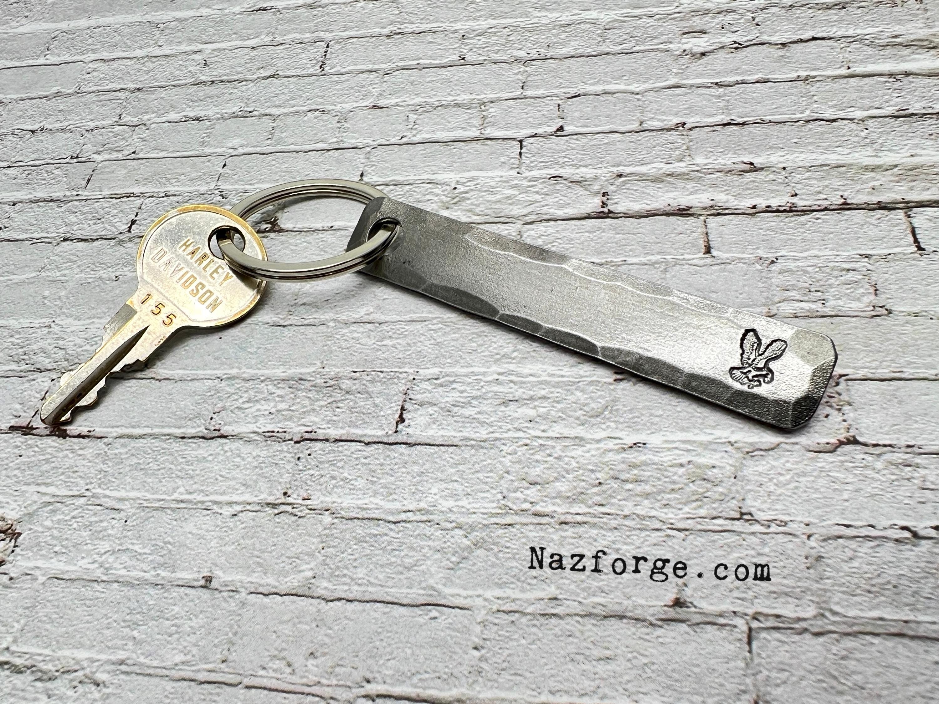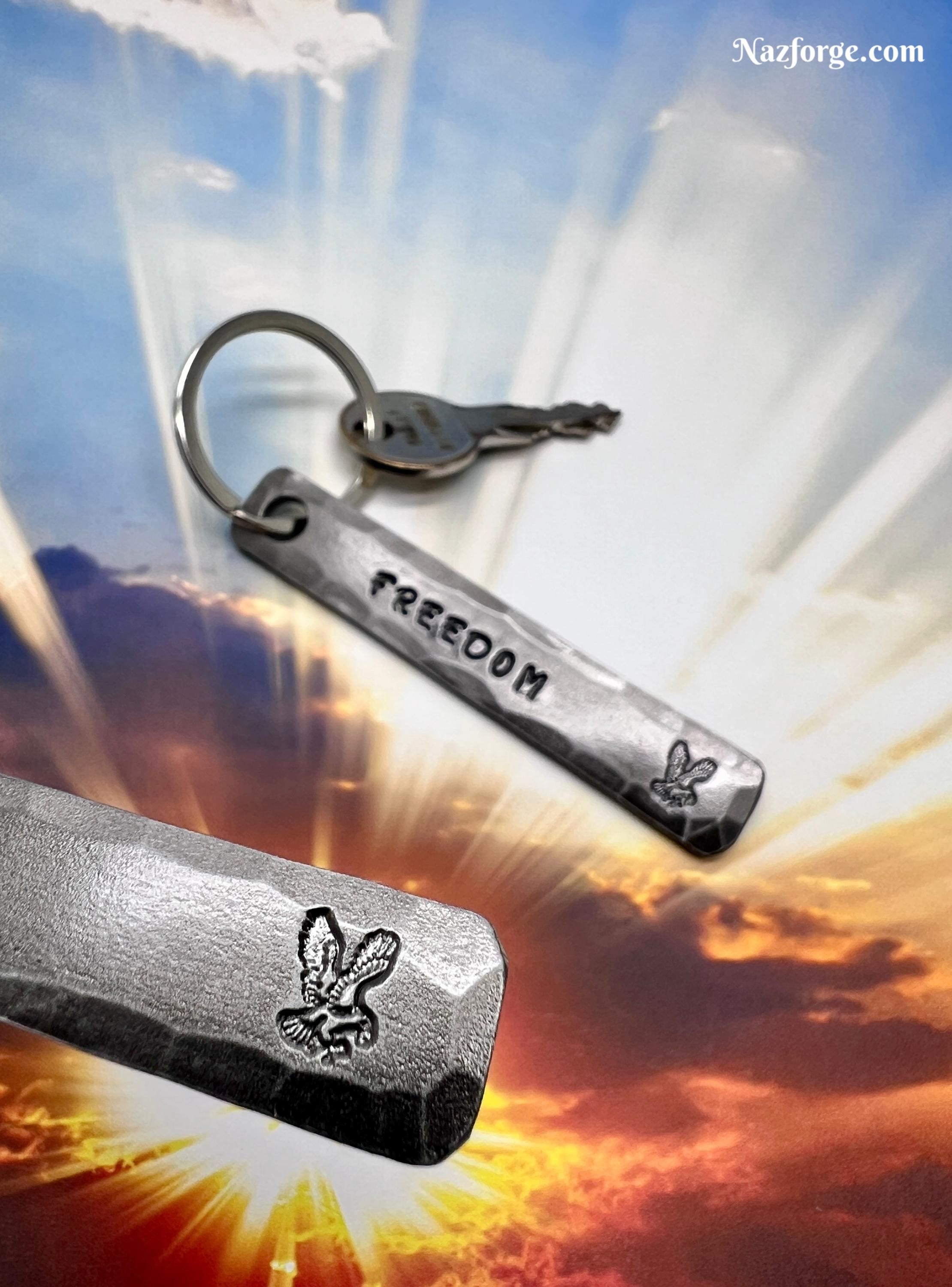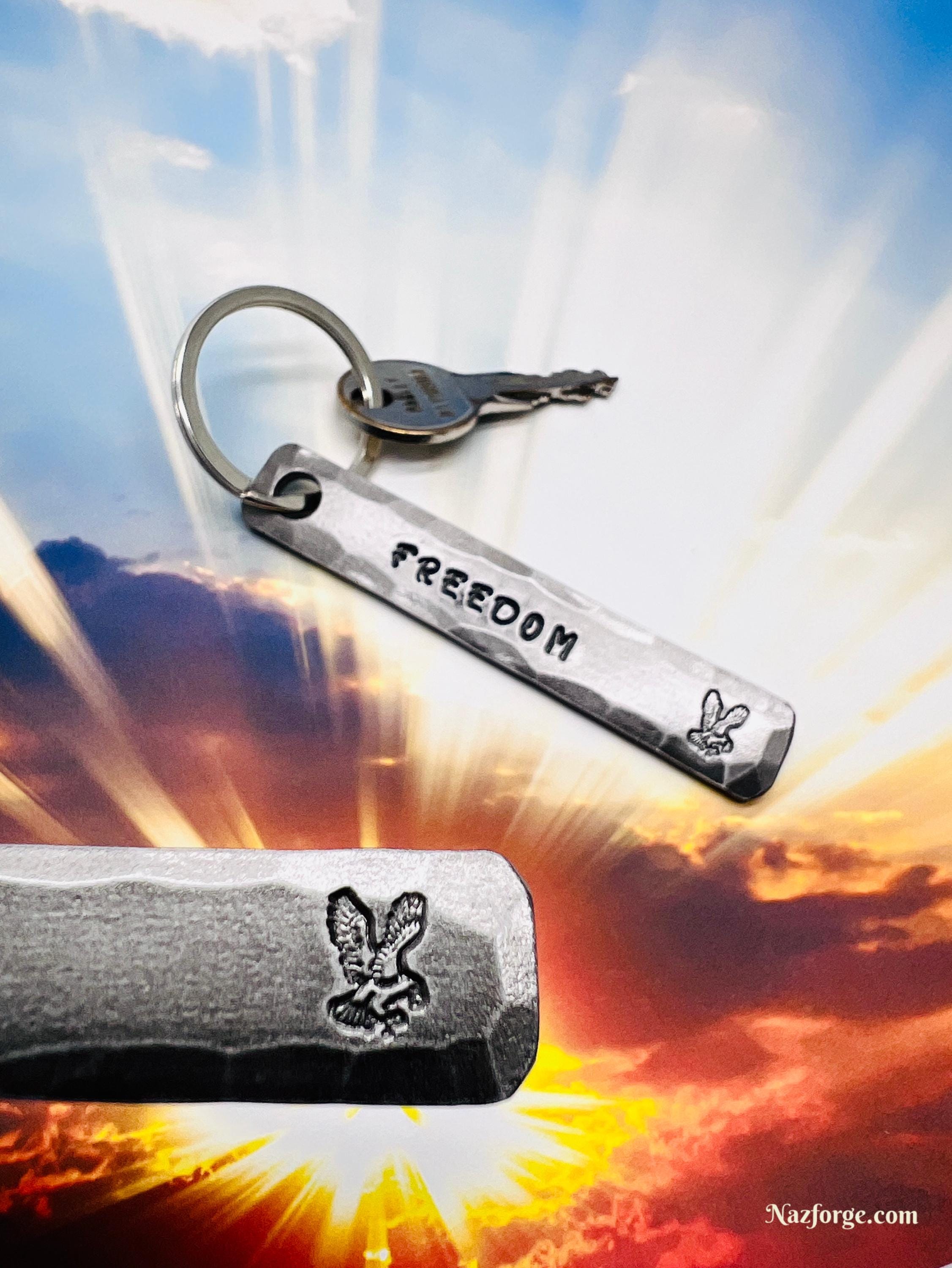 On the front I stamp the Eagle along with your choice of personalization if you choose to personalize it… The corners are smoothened and the edges hammered to give it a nice hand made feel and texture that you can not get with a machine, my logo signature "Naz" is on the back...