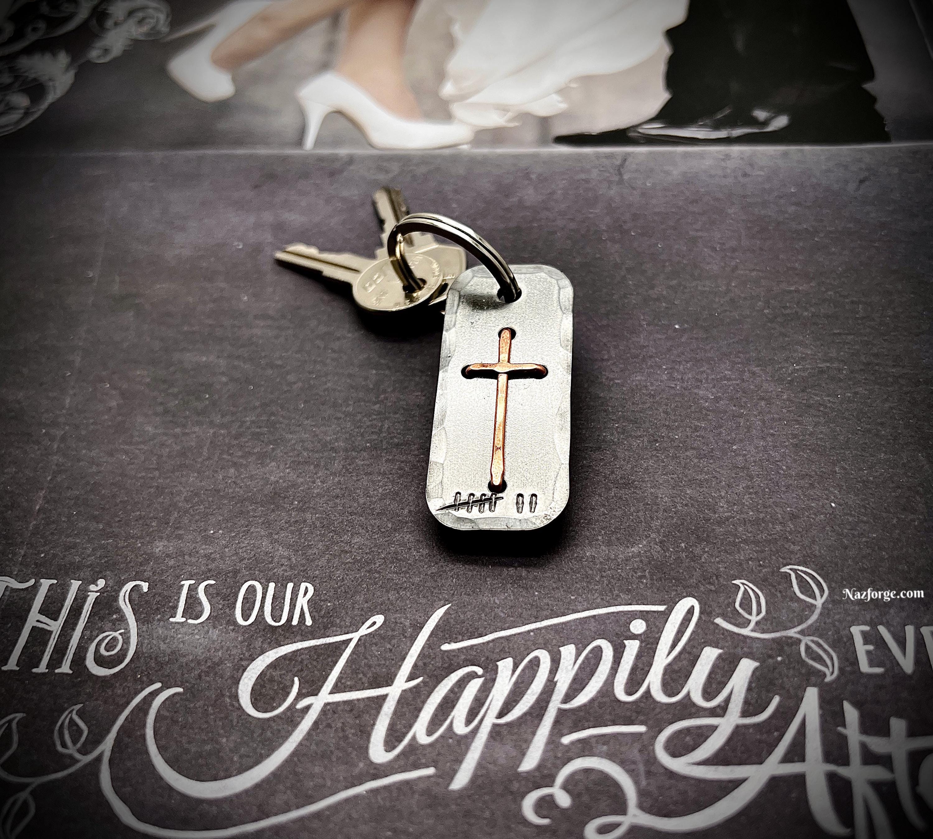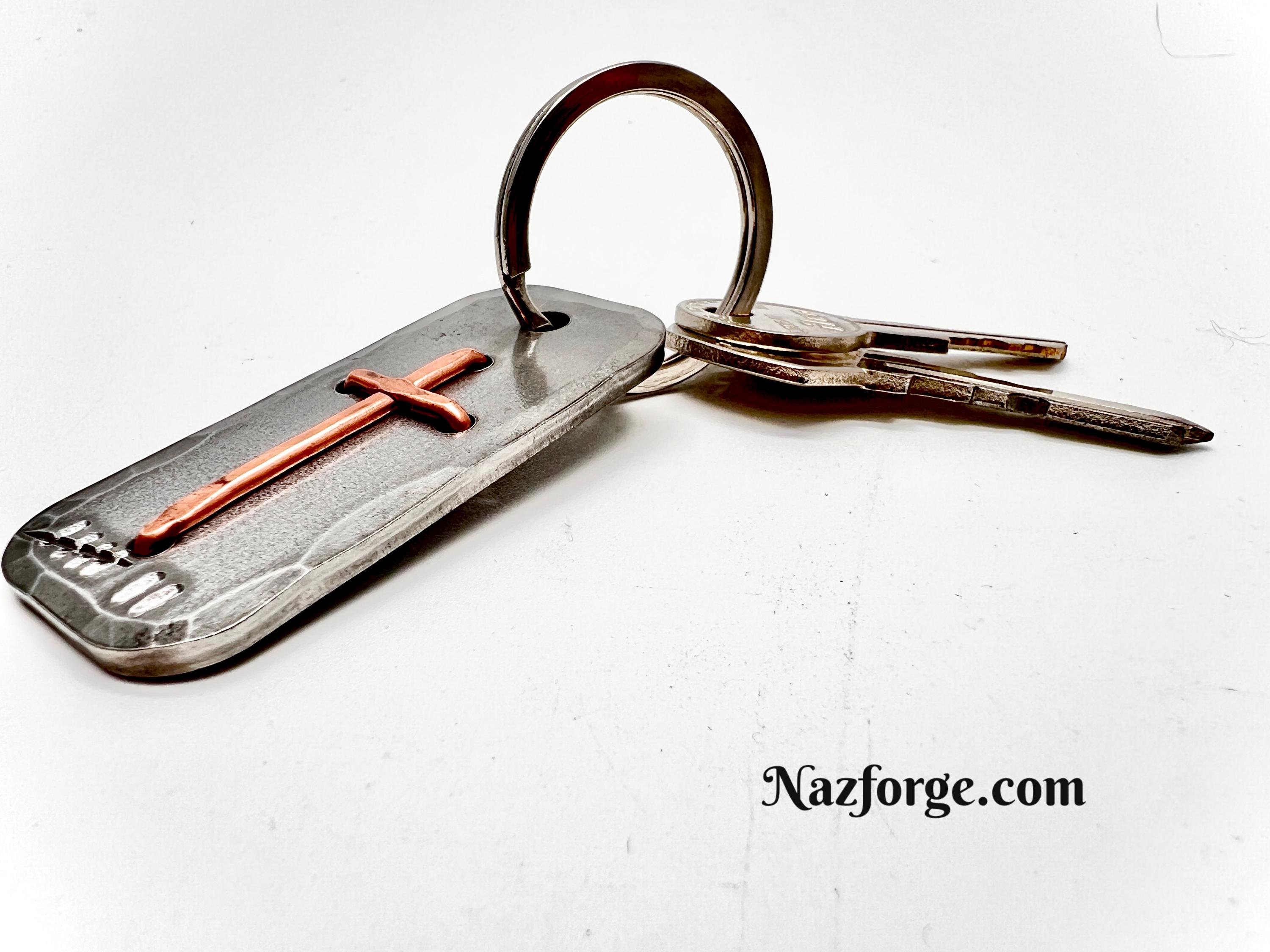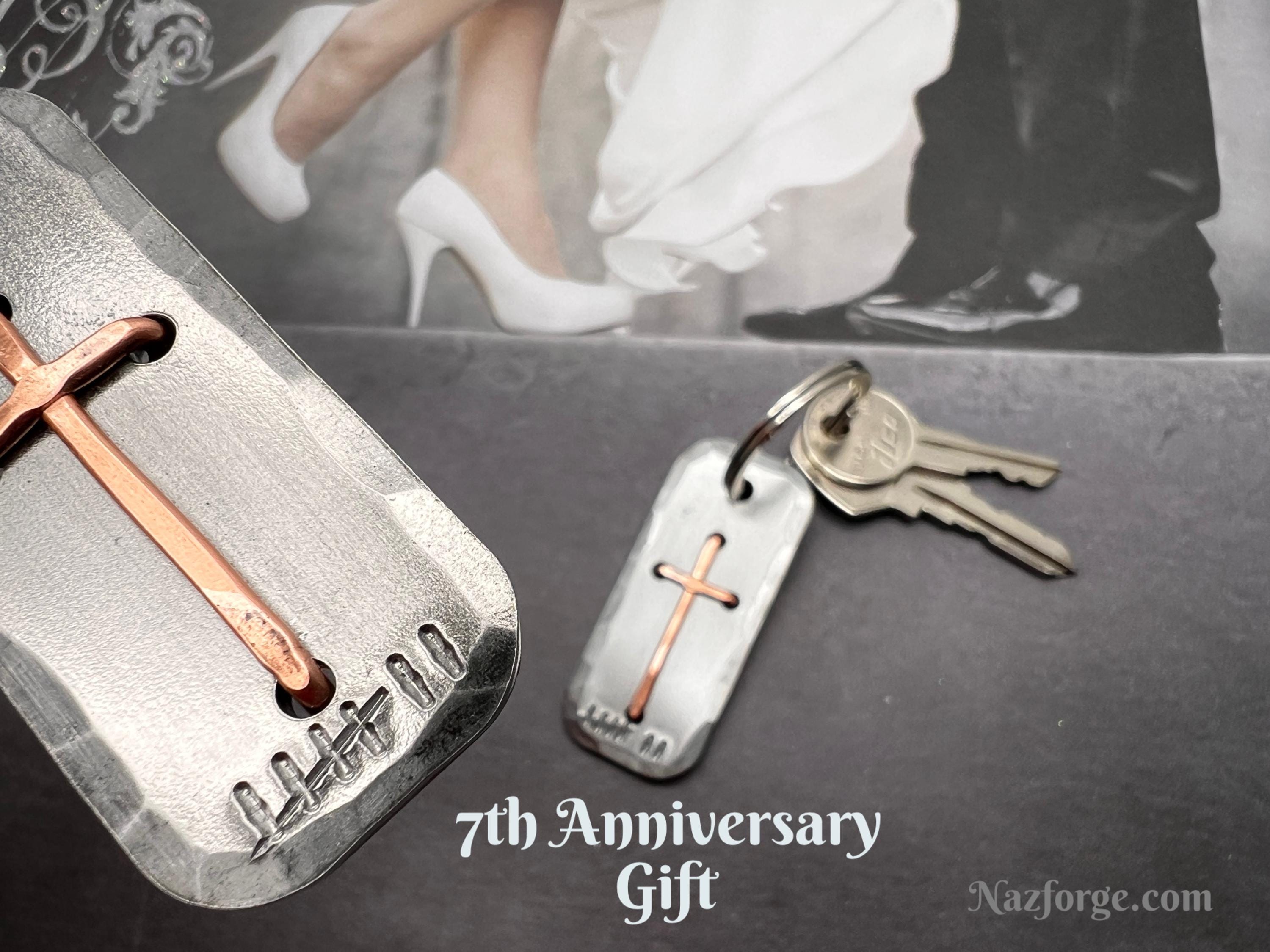 Looking for the perfect gift for your loved one on your 7th "Copper" wedding anniversary ?... You're at the right place !... Your wedding anniversary is unique and should be highlighted with a unique gift, a handmade item has that warm uniqueness feel that is not attainable with a machine... This hand forged cross keychain is made to last a lifetime ...