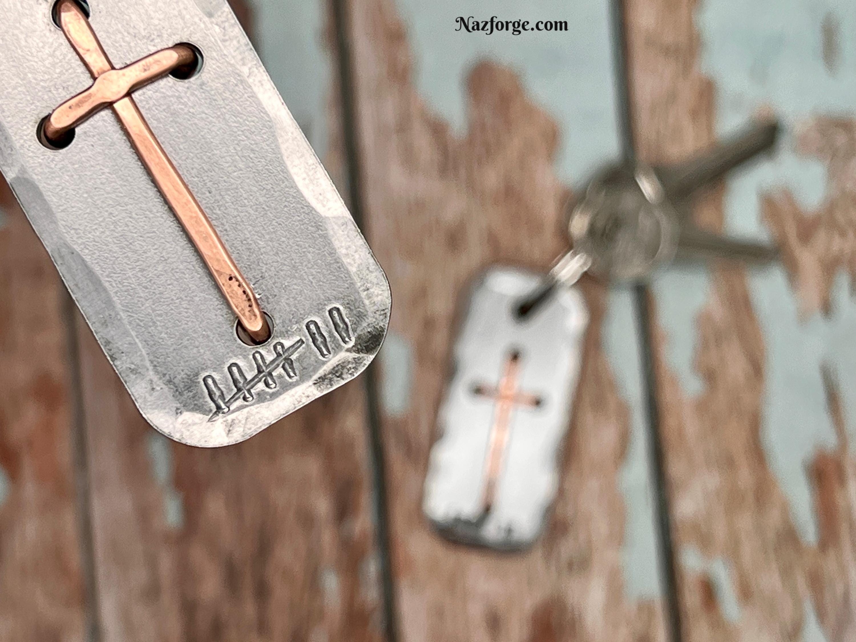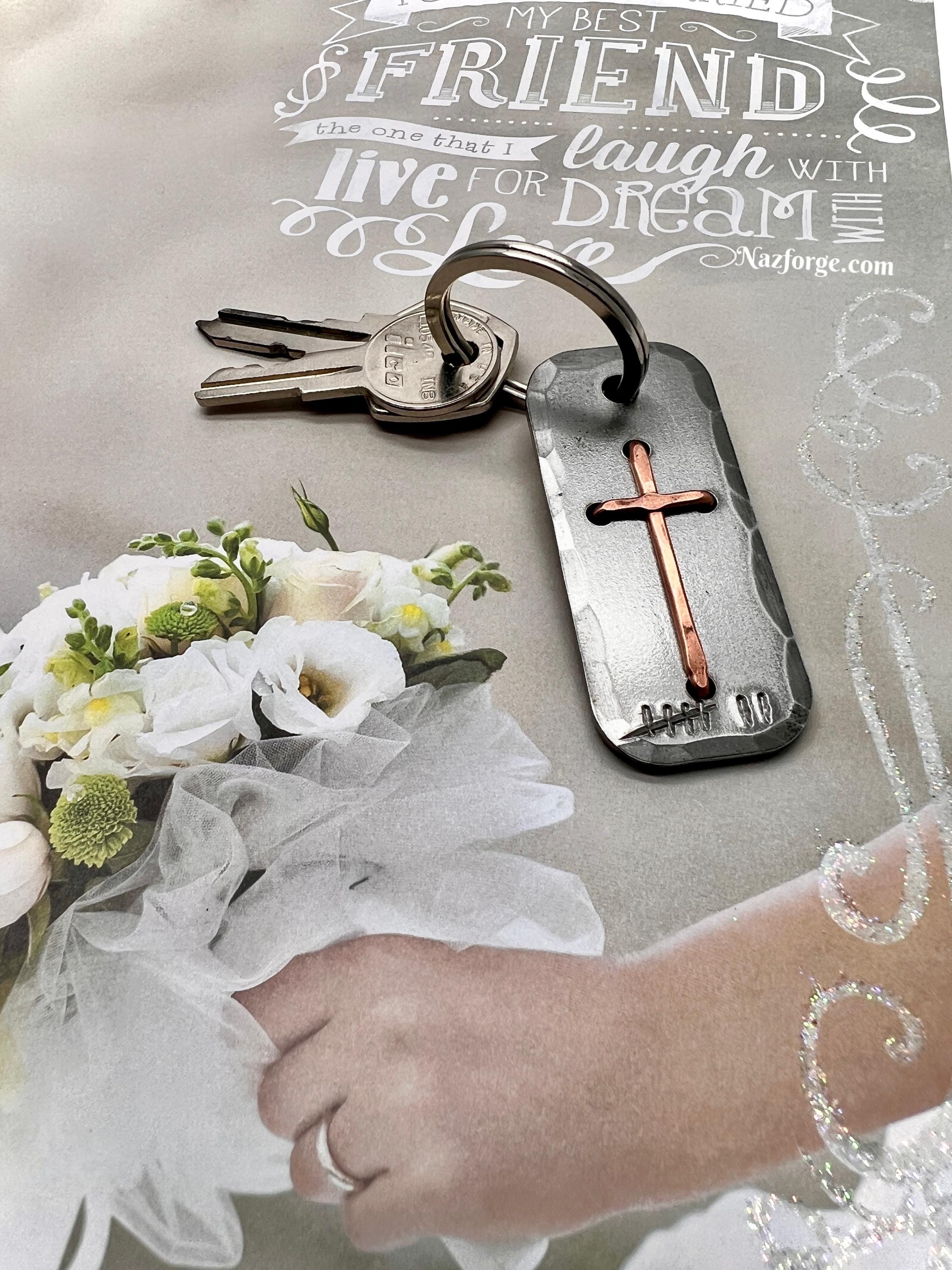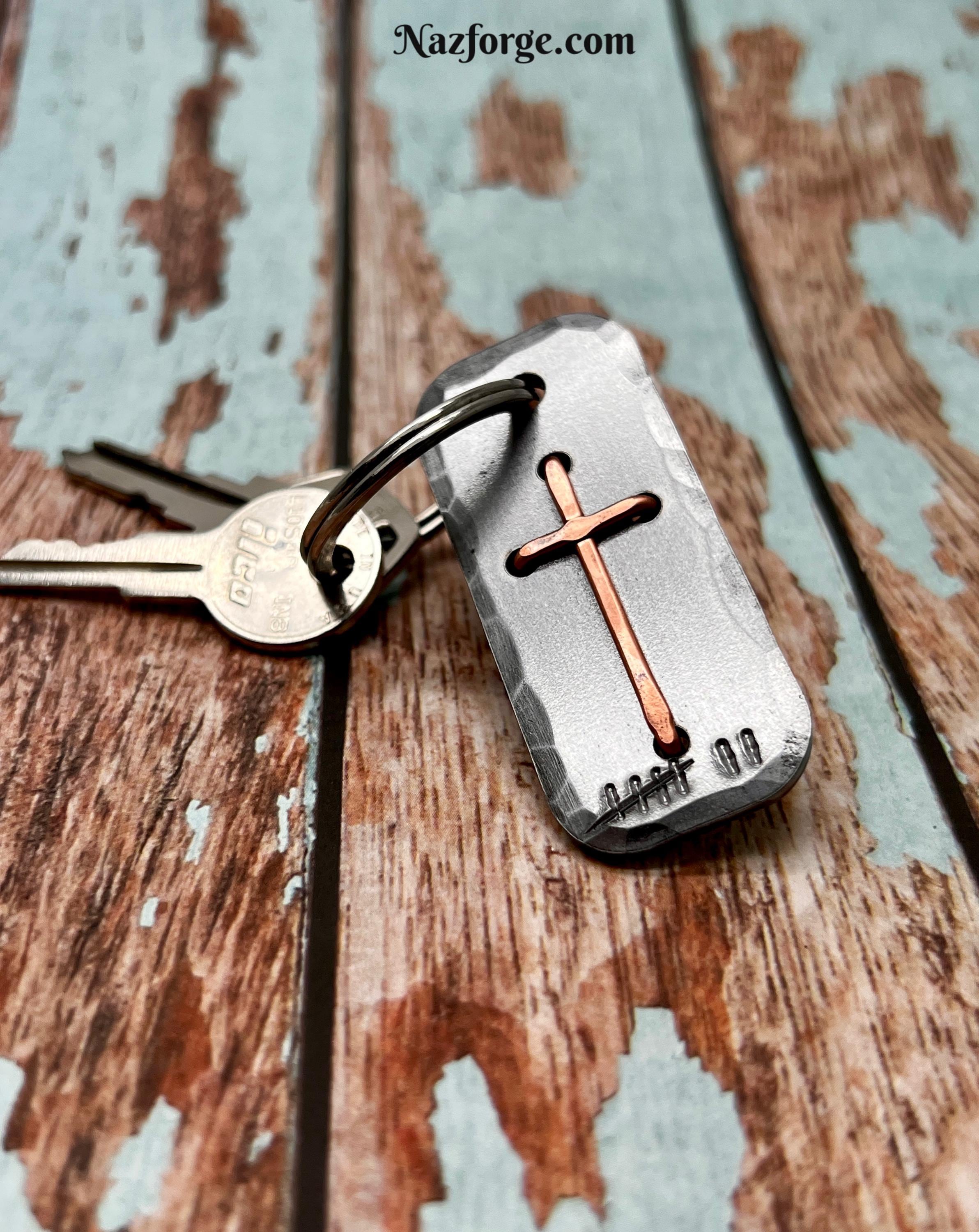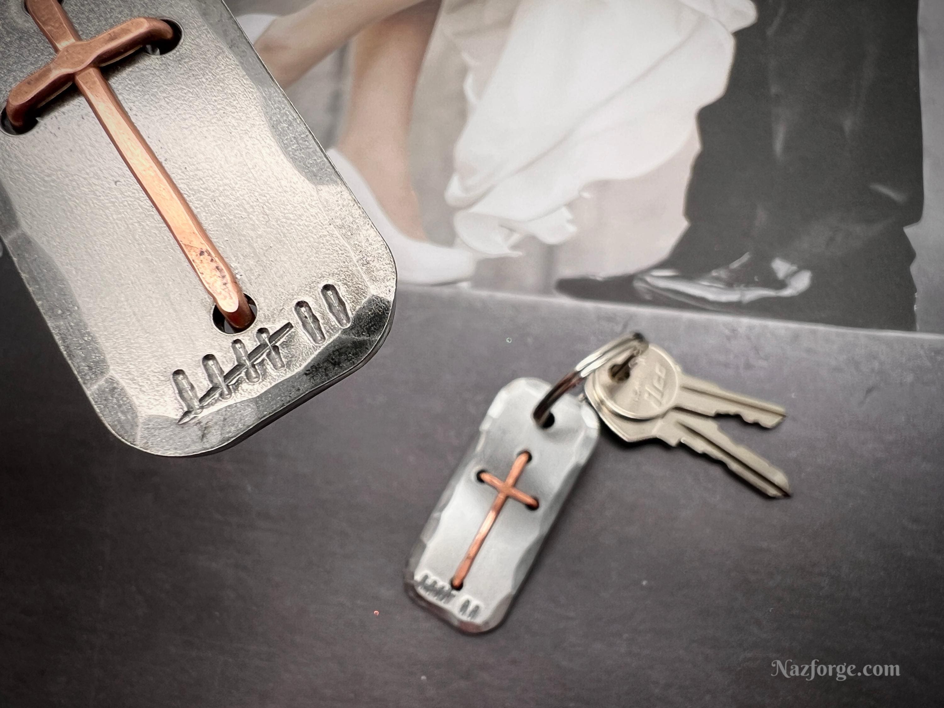 Looking for the perfect gift for your loved one on your 7th "Copper" wedding anniversary ?... You're at the right place !... Your wedding anniversary is unique and should be highlighted with a unique gift, a handmade item has that warm uniqueness feel that is not attainable with a machine... This hand forged cross keychain is made to last a lifetime ...