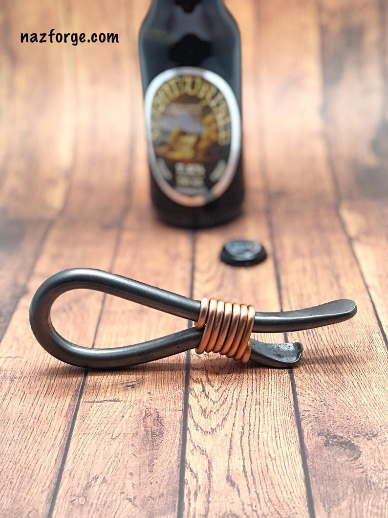 I put a lot of importance in cleaning each opener after it has been hammered, bent into shape, and "in and out" of the fire numerous times...I achieve the clean look you see in the photos by using the wire wheel and sandpaper, this leaves each opener with a clean attractive look that is perfect for gift giving...