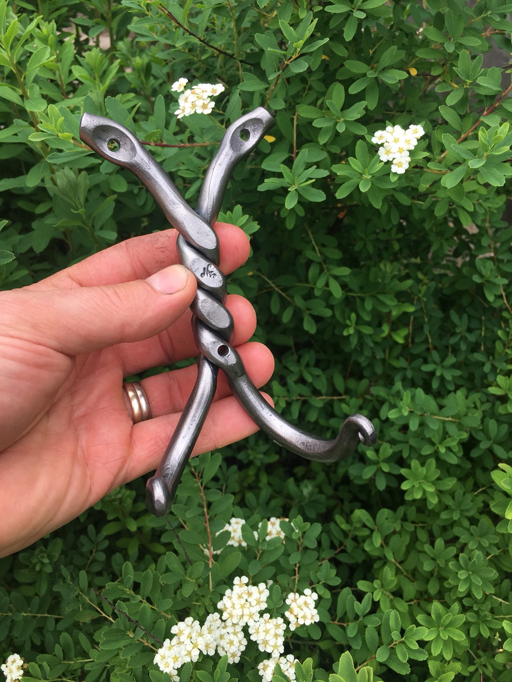 I love making this original "square twist", each one is unique, when you hold it in your hands you can see and feel the hand made craftsmanship that went into it, every inch of this item has either been hammered, bent, twisted or forged in some way...