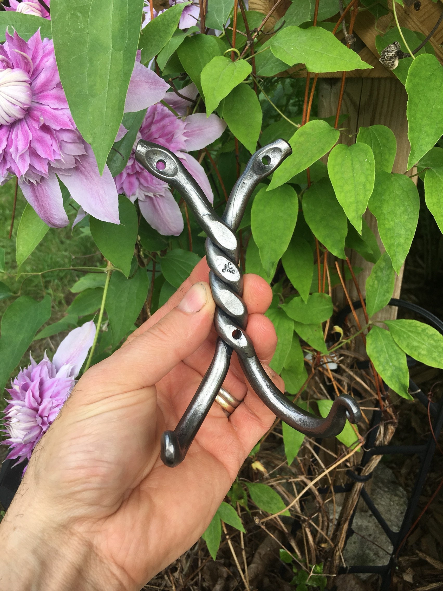 I put a lot of importance in cleaning each item after it has been hammered, bent into shape, and "in and out" of the fire numerous times.. Each one is finished with a clean attractive look...
