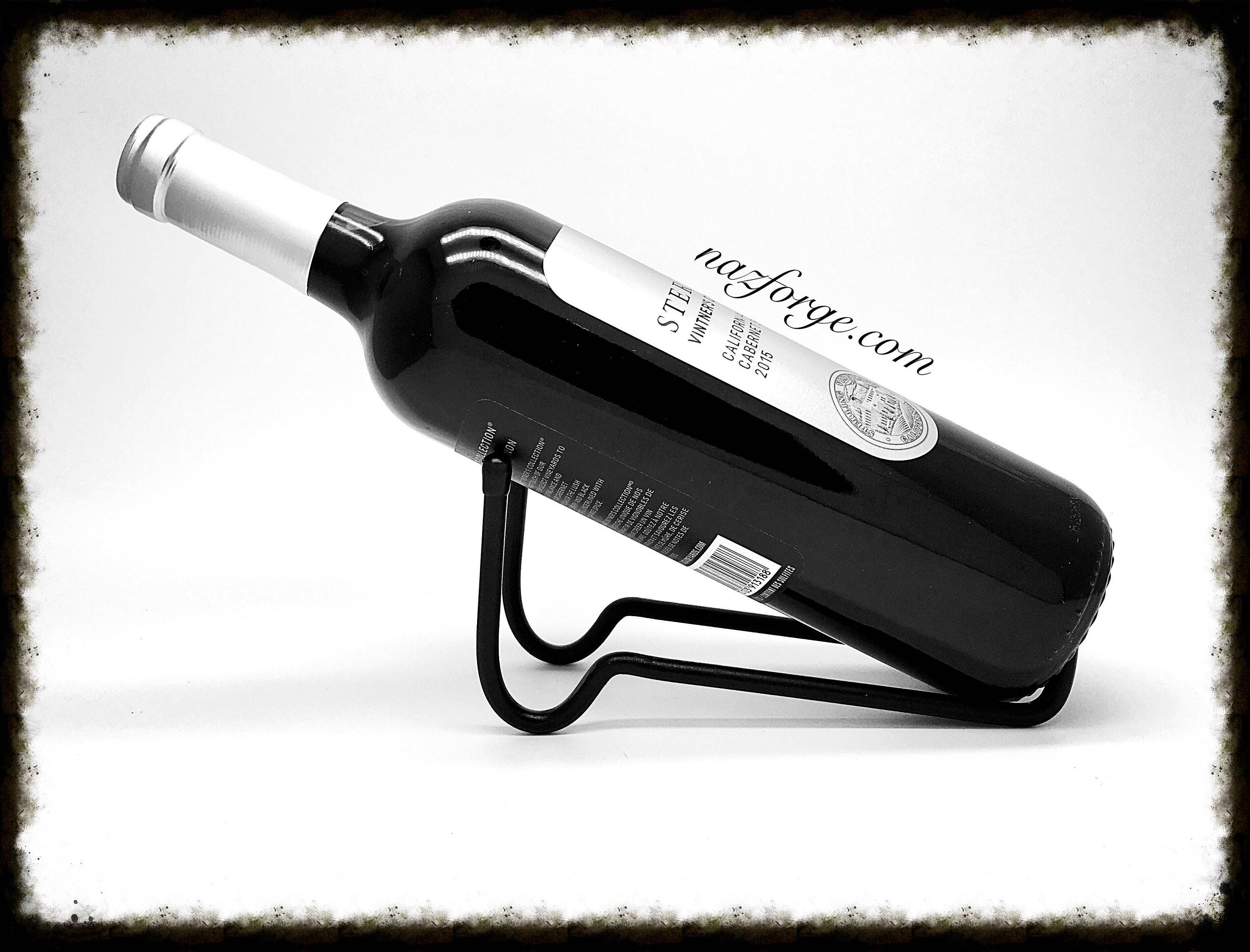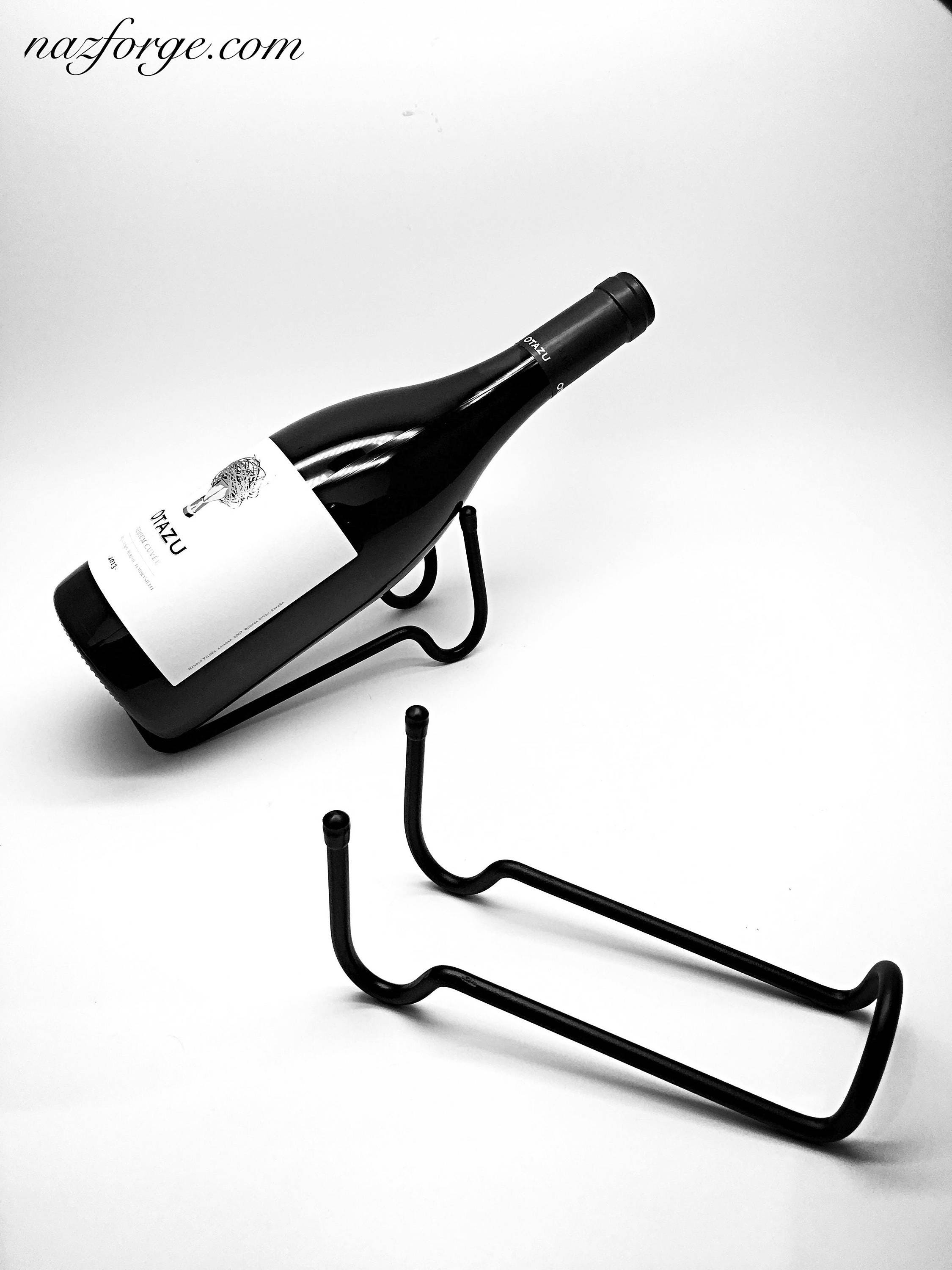 This is a hand made wine bottle holder that displays your favorite wine bottle at a slight angle.
