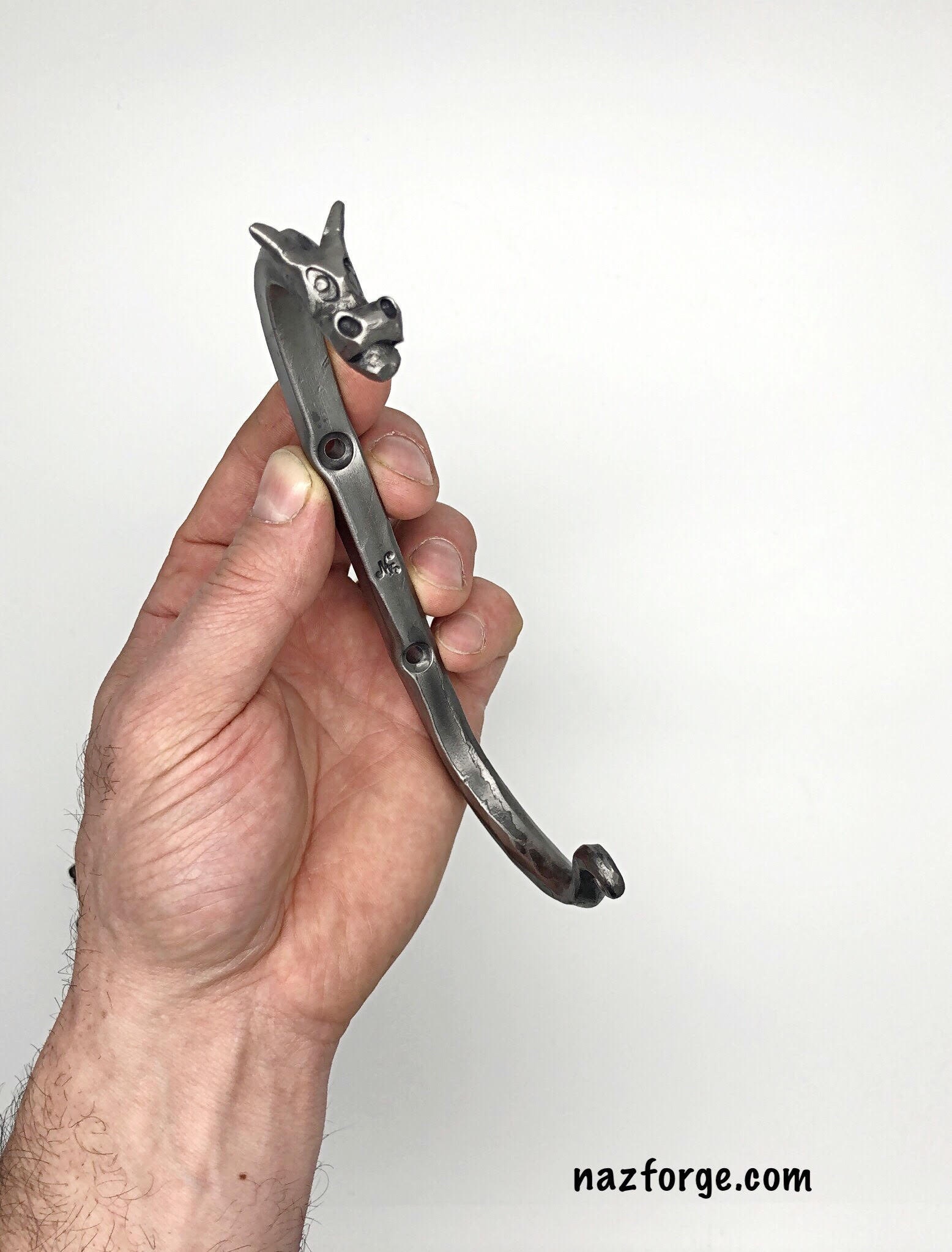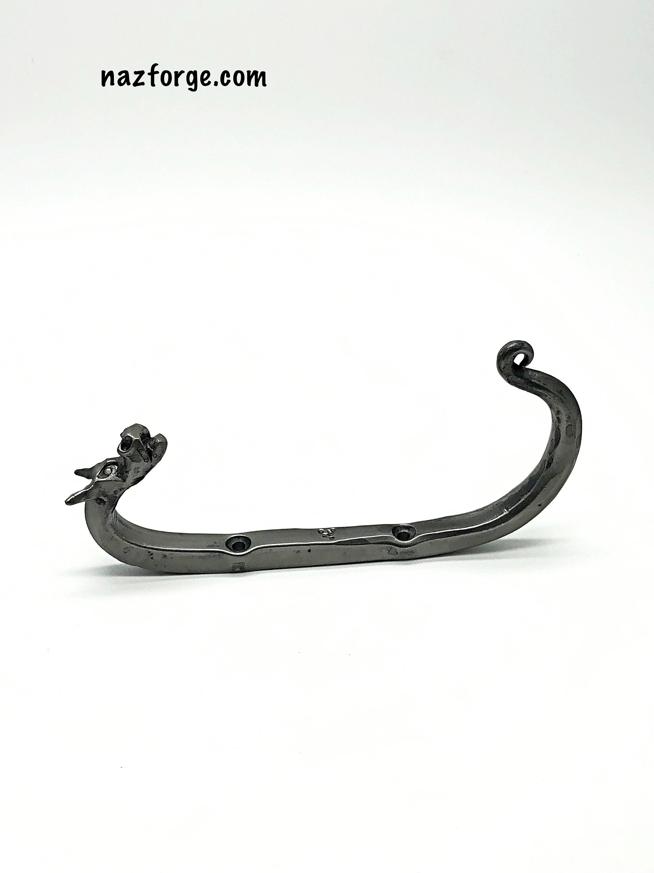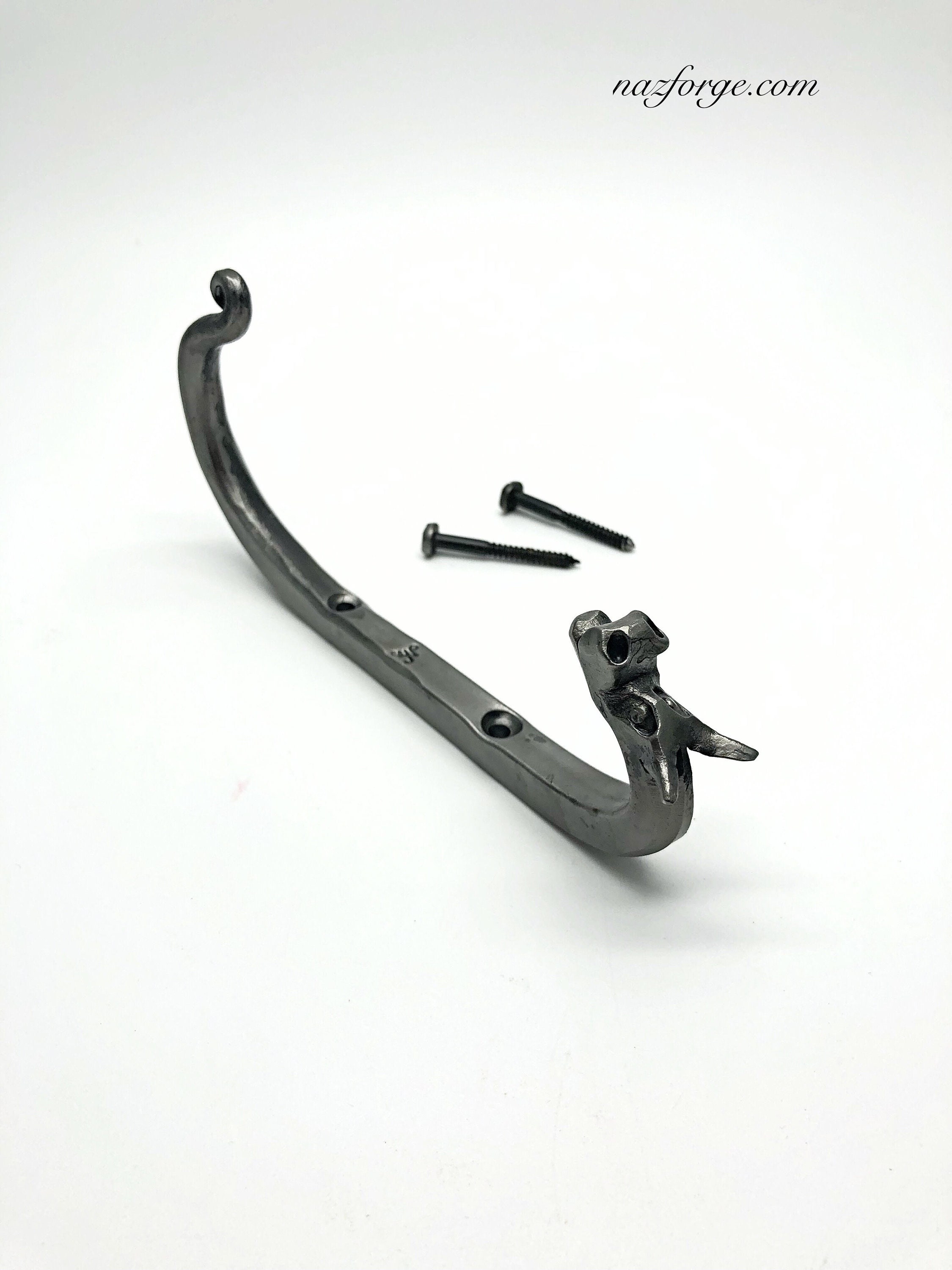Since they are hand forged one at a time, they each have their own personality and character, not one is the same, this listing is for the forged dragon hook you see in the photos above.