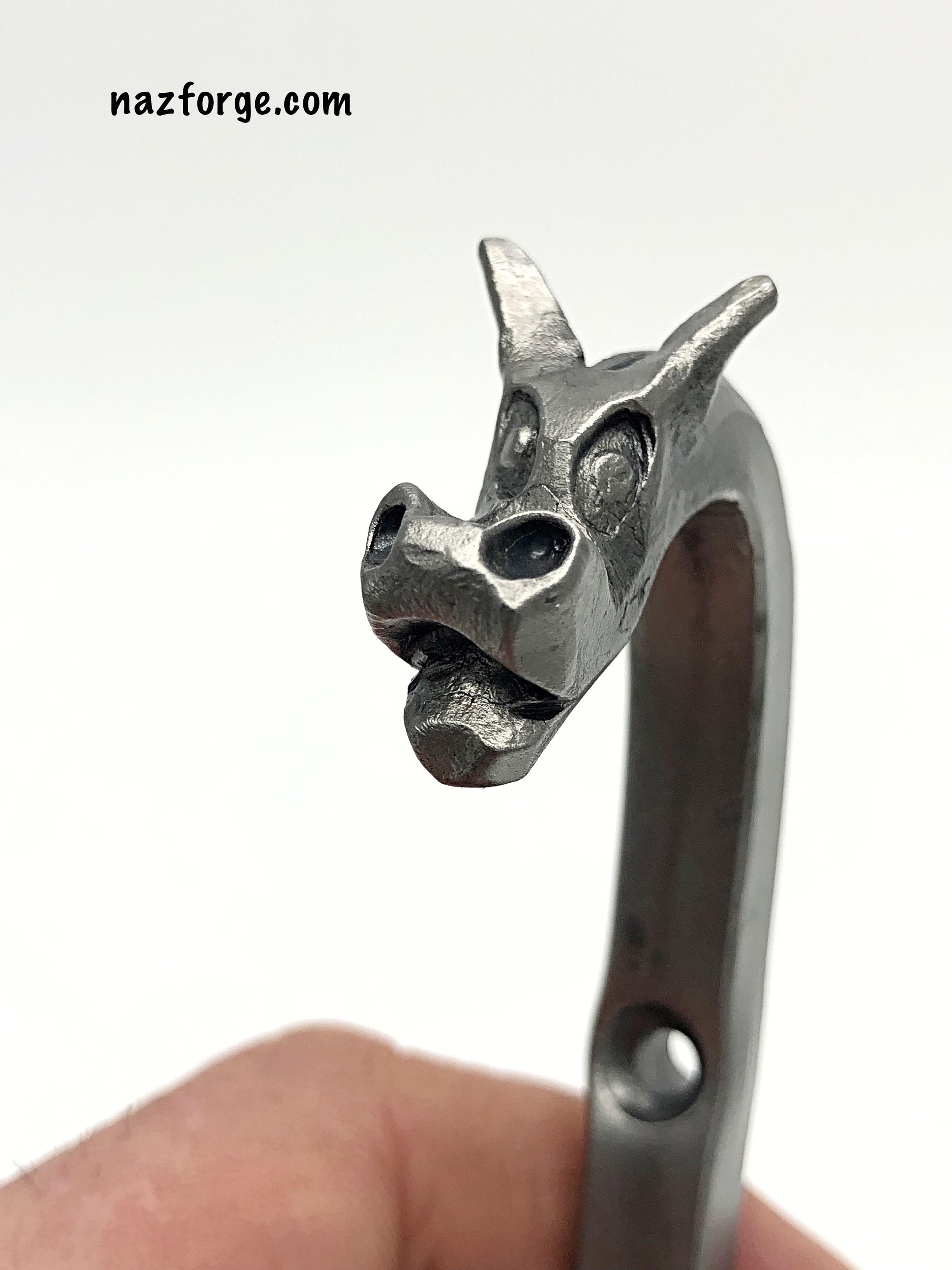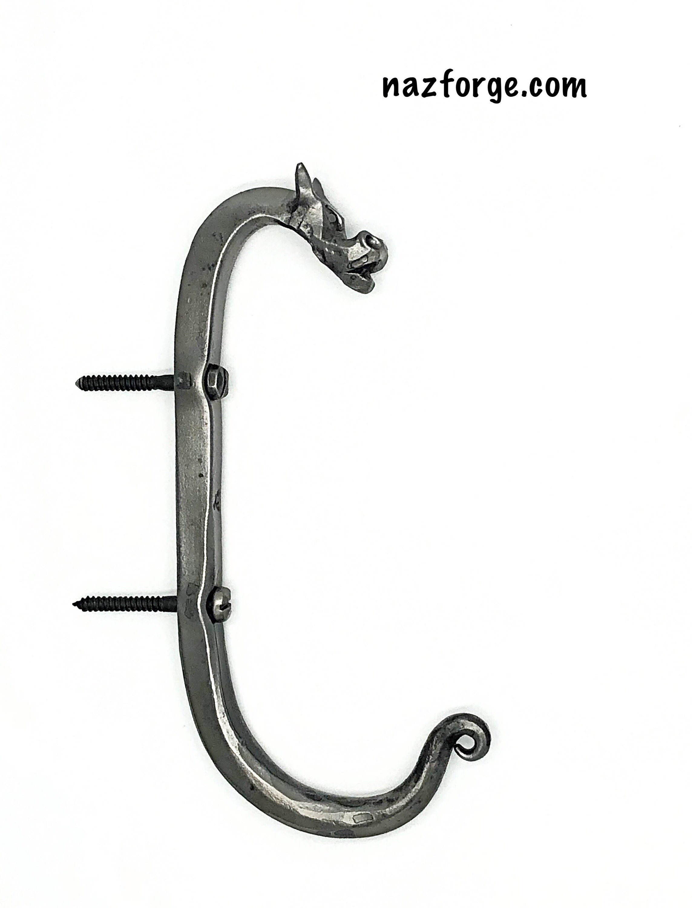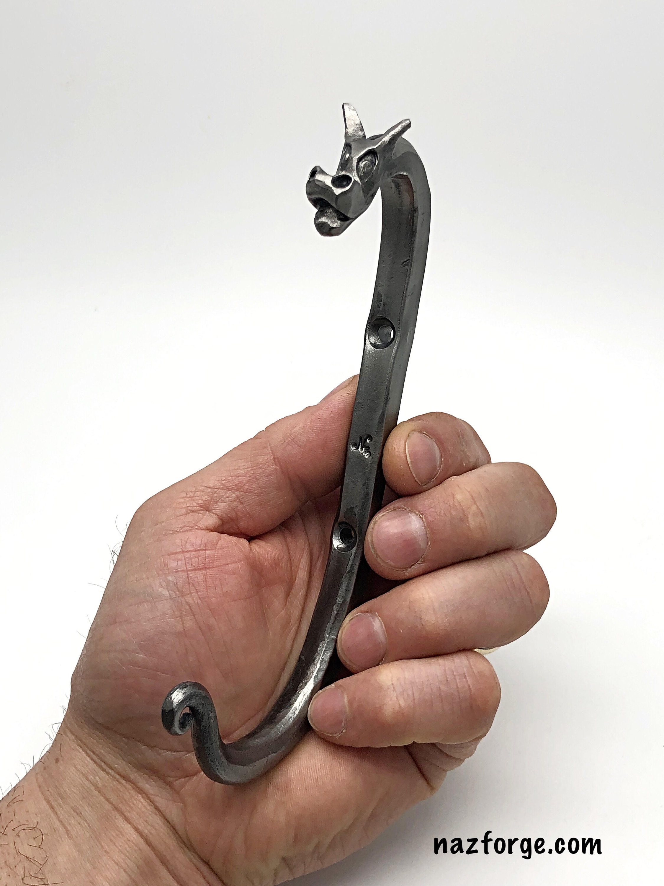 Since they are hand forged one at a time, they each have their own personality and character, not one is the same, this listing is for the forged dragon hook you see in the photos above.